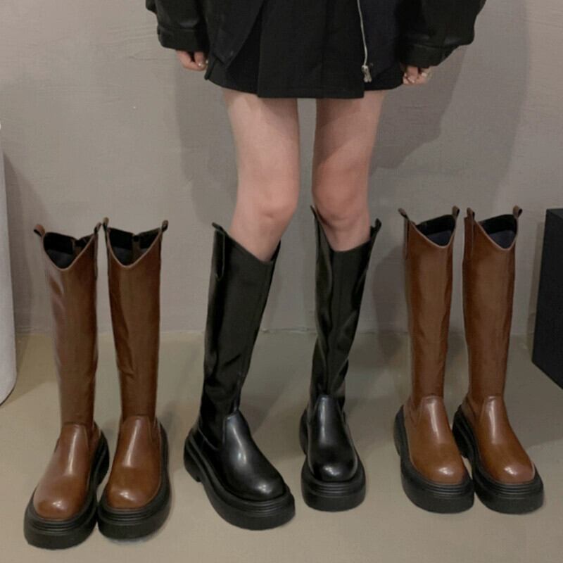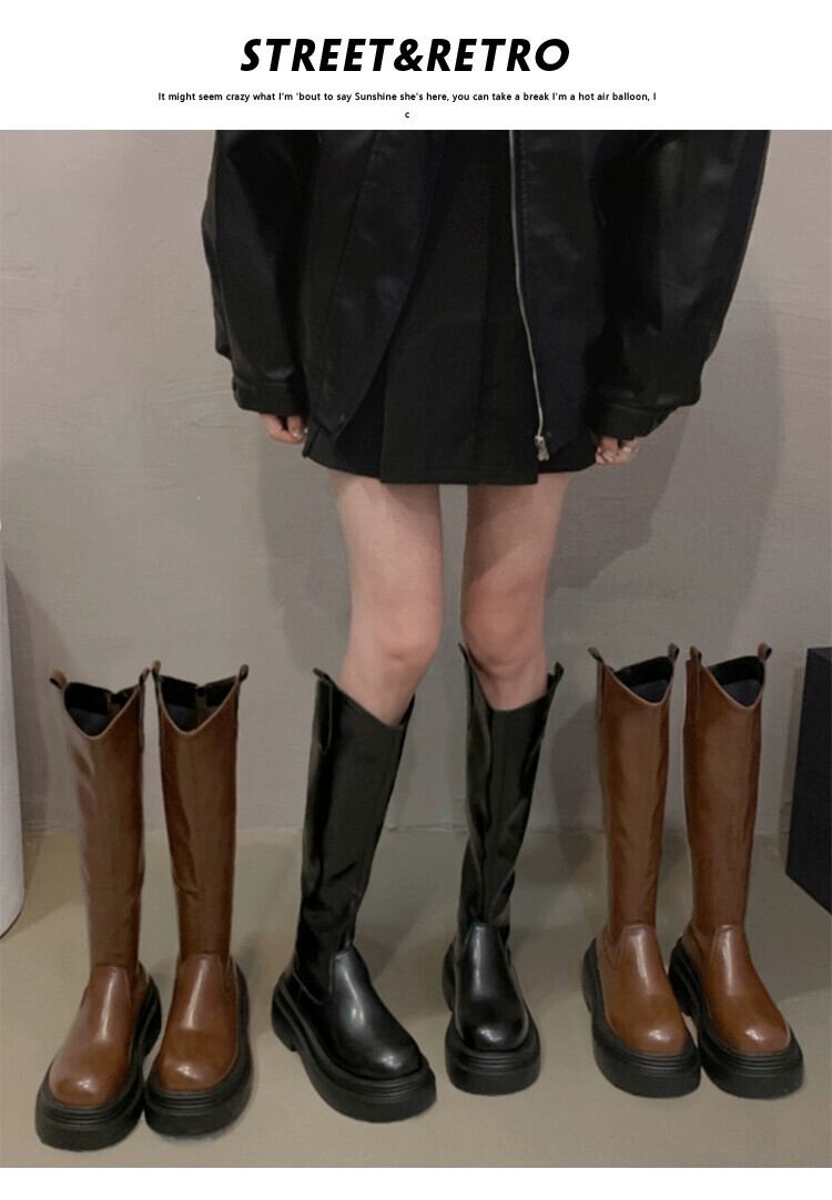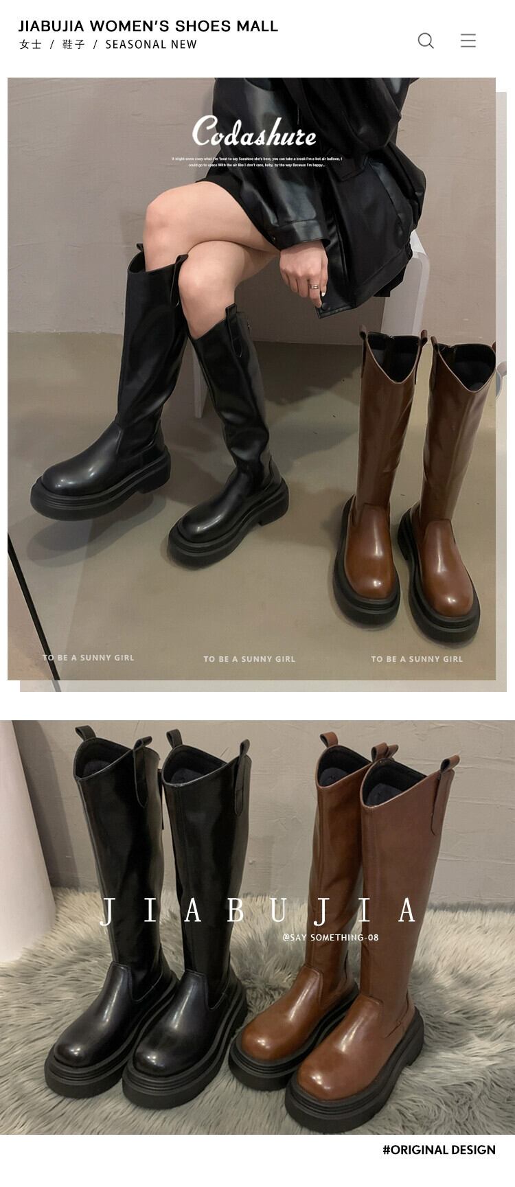 Jia Bujia レディースブーツ 2023 秋の新スタイルシンプルなレトロな気質厚底ノーニースリムブーツトレンド 靴 シューズ オータム 秋物 jxjxf14819405315