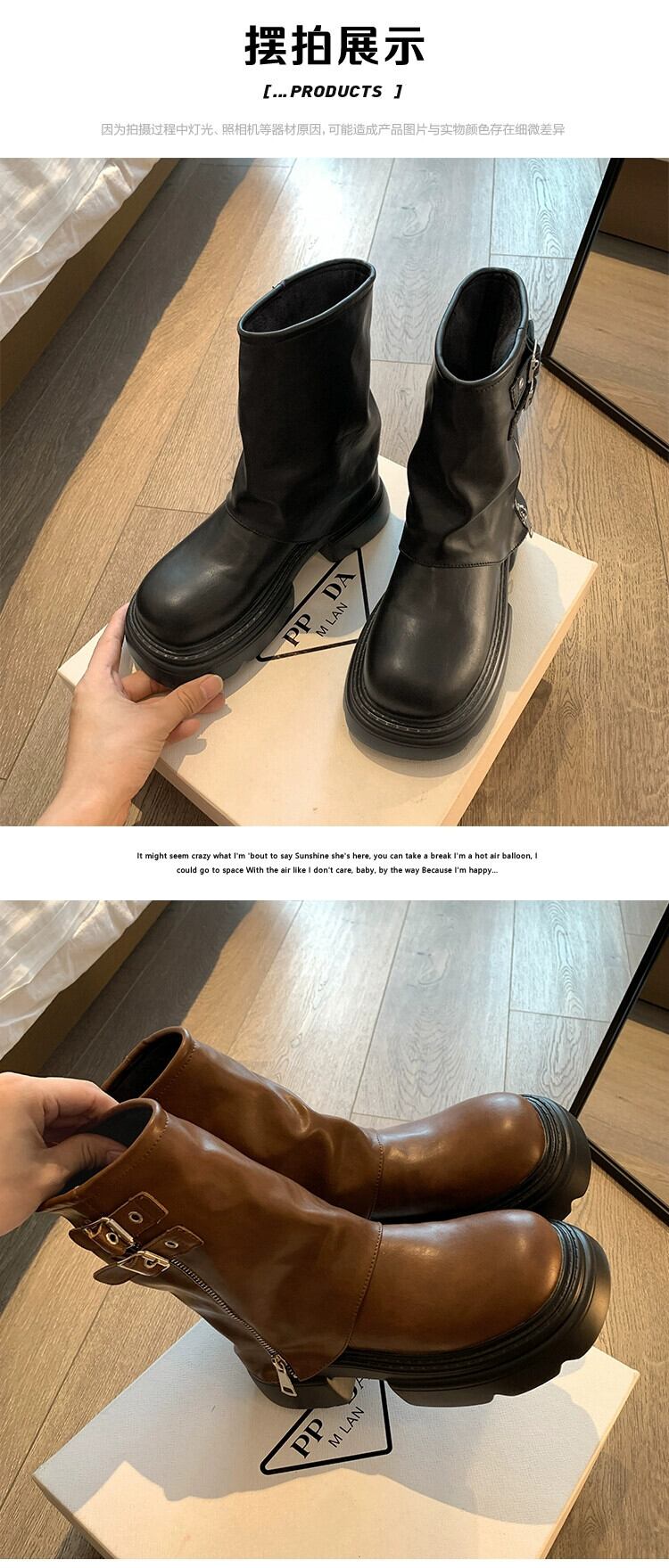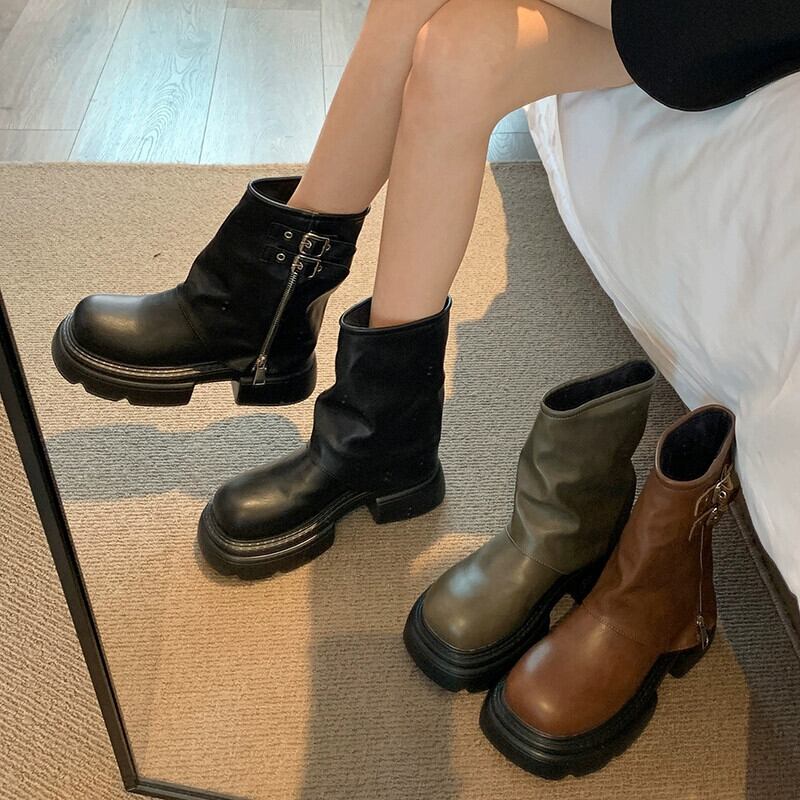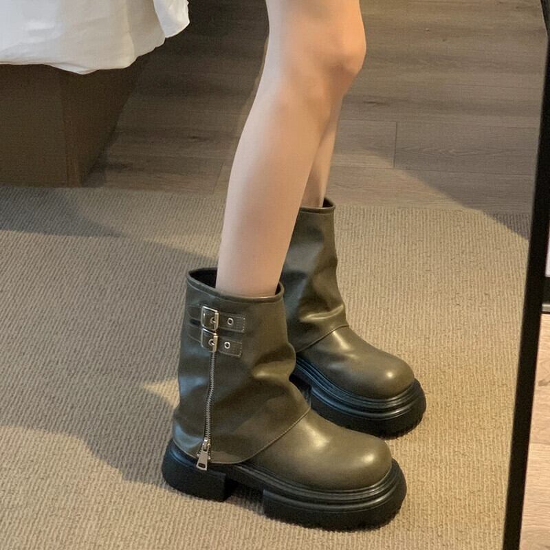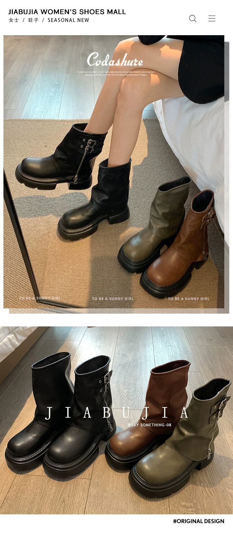 Jia Bujia eign スタイルショートブーツ女性 2023 秋の新ファッション人気のベルトバックルハンサムオートバイズボンブーツ 靴 シューズ オータム 秋物 ハーネス jxjxf21993632852