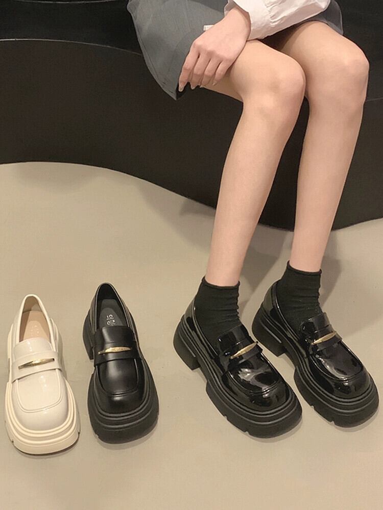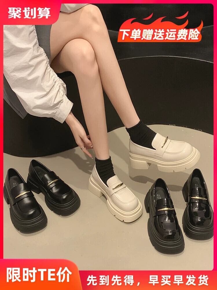 Jia Bufake ローファー女性の厚底 2023 秋レトロ英国スタイルの小さな革の靴黒の多用途の靴トレンディ シューズ ブラック オータム 秋物 レザー jxjxf85906753878