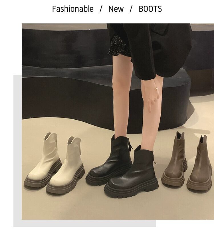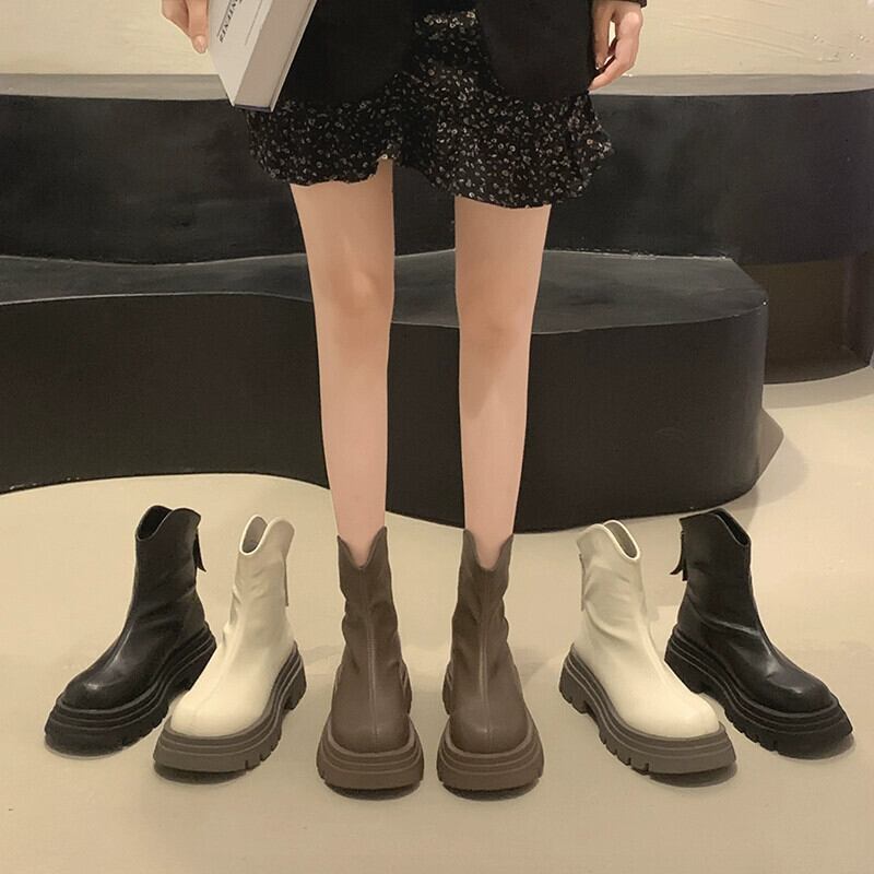 Jia Bujia 厚底ショートブーツの女性 2023 夏の新ファッション多用途シンプルなレトロハンサムなスリムブーツ 靴 シューズ サマー 夏物 jxjxf27540106451