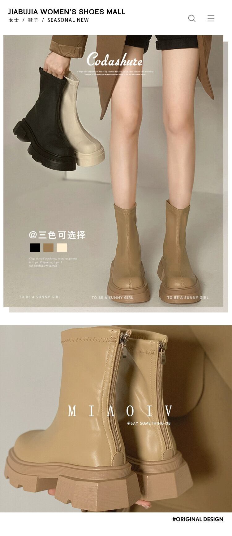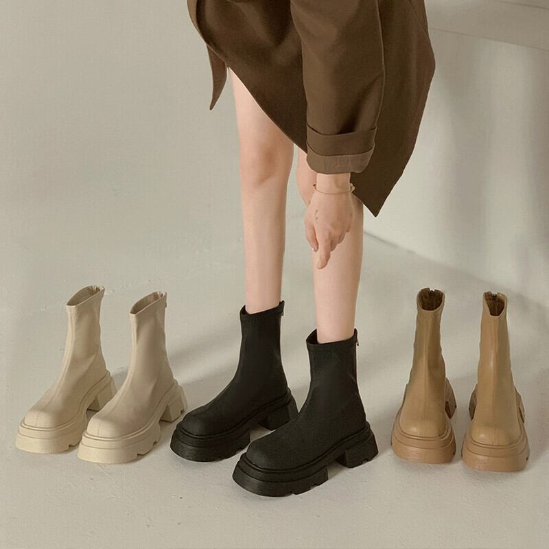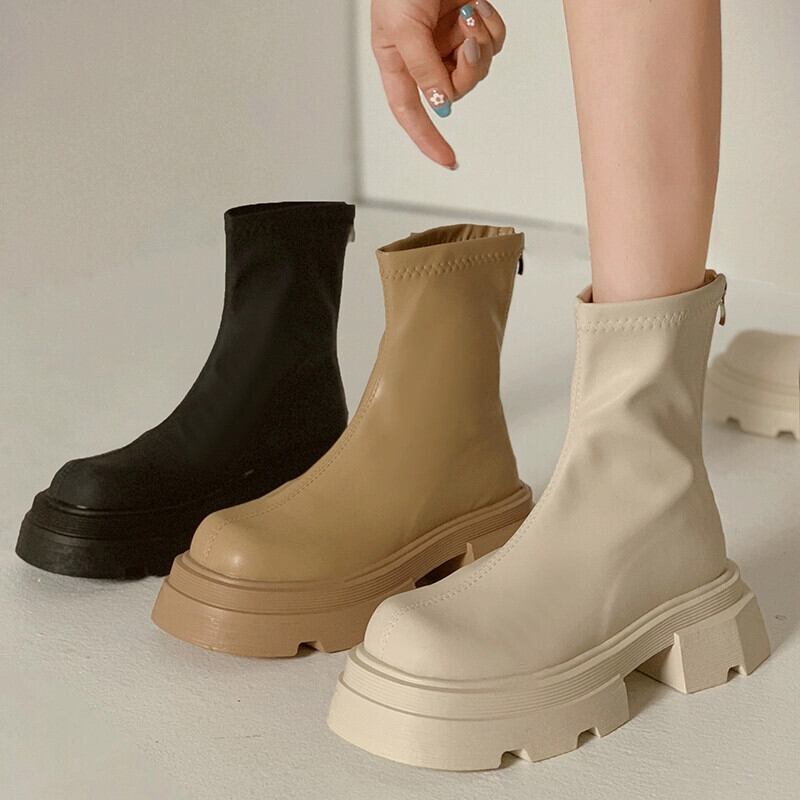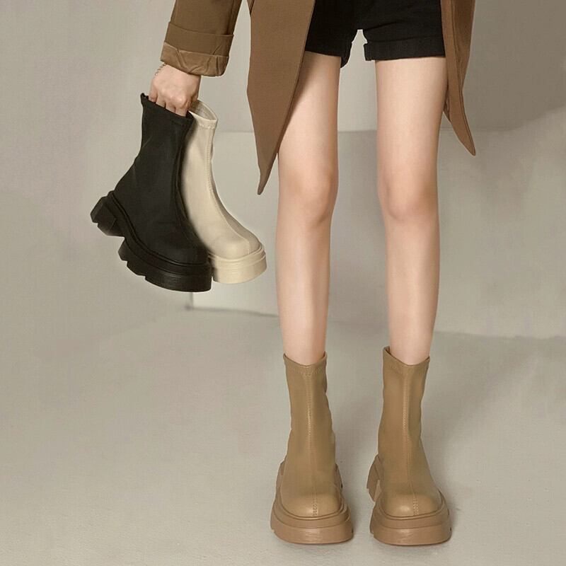 Jia Bujia ショートブーツ女性 2023 新しい夏のファッション多目的小人ストリートスタイルシンプルな厚底スリムブーツ 靴 シューズ サマー 夏物 jxjxf15561533305
