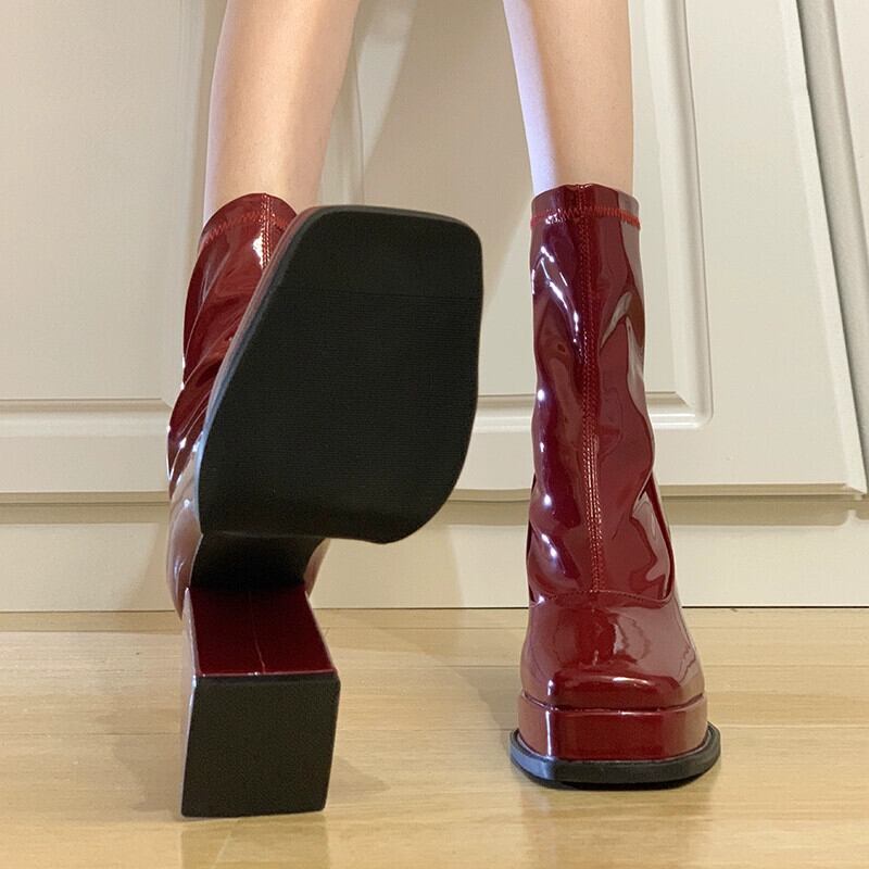Jia Bufake 厚いヒールショートブーツの女性 2023 秋の新ファッションフレンチスタイル多用途ハイヒール弾性スリムブーツ 靴 シューズ エラスティック 伸縮 オータム 秋物 jxjxf32946019014