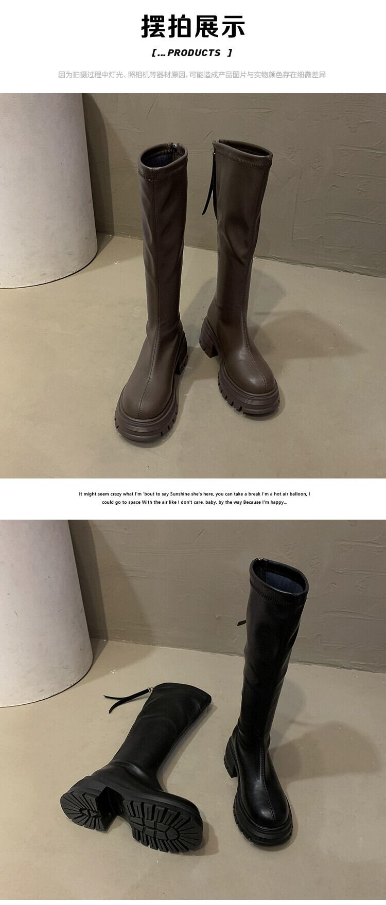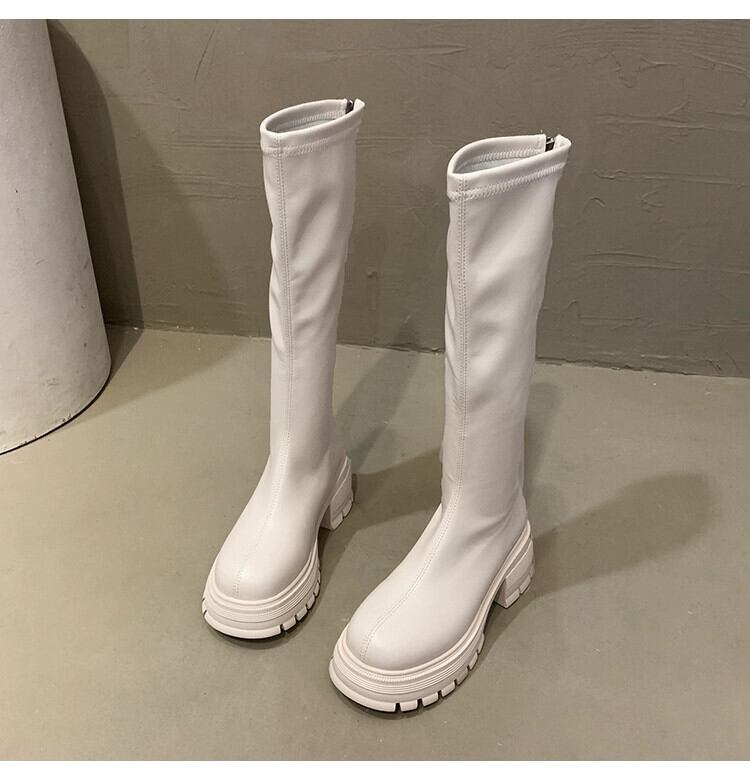 Jia Bufake ブーツ レディース 2023 秋の新スタイル、スリムで万能な小柄な方、太いヒールと膝丈以下のハンサムなブーツ 靴 シューズ オータム 秋物 jxjxf59803387324