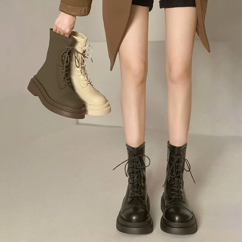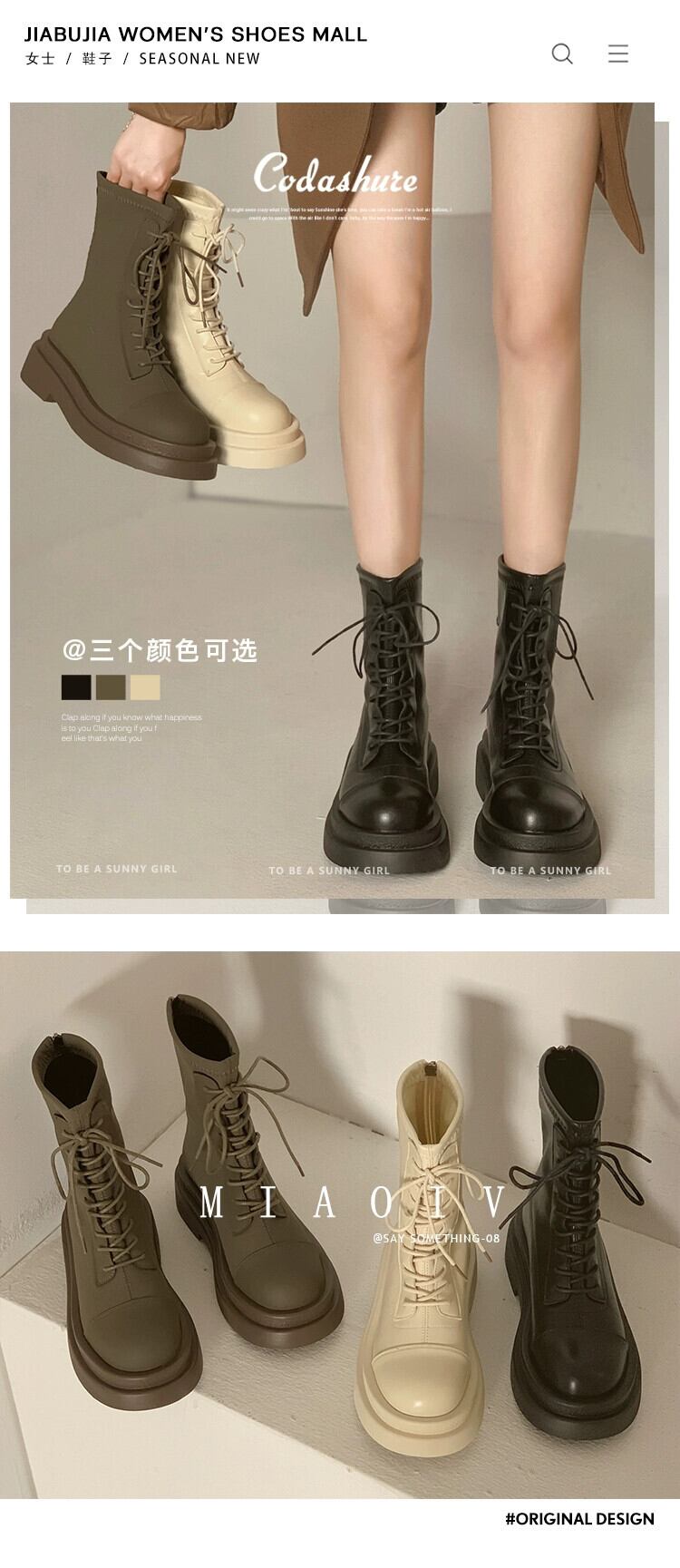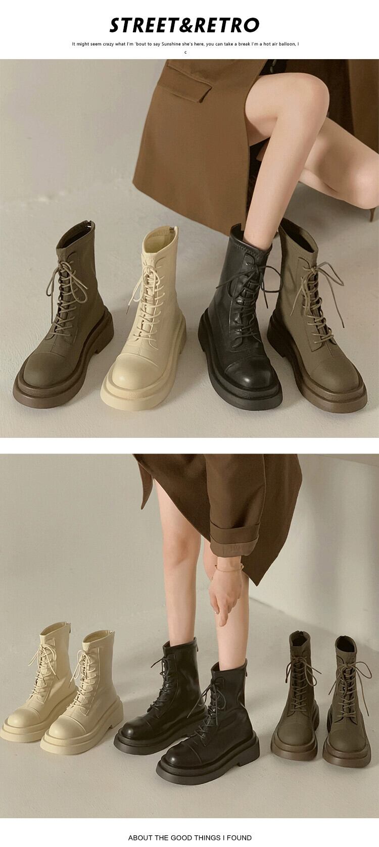 レースアップショートブーツ女性 2023 春の新作ファッショナブルなフレンチレトロ厚底滑り止めスリムマーティンブーツ春 靴 シューズ スプリング 春物 jxjxf77451991347