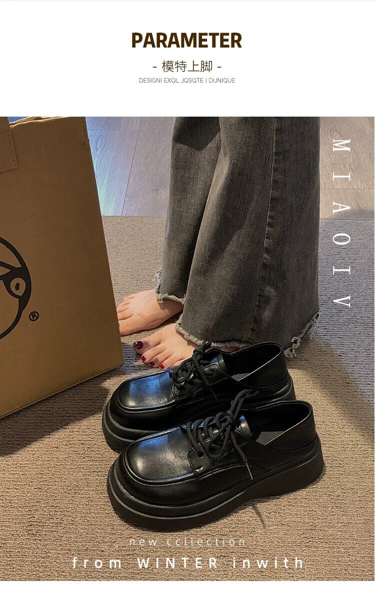 Jia Bujia インターネット有名人のシングルシューズの女性 2023 夏新レトロ多用途学生 comtable 厚底カジュアル小さな革靴 サマー 夏物 レザー jxjxf2298469068