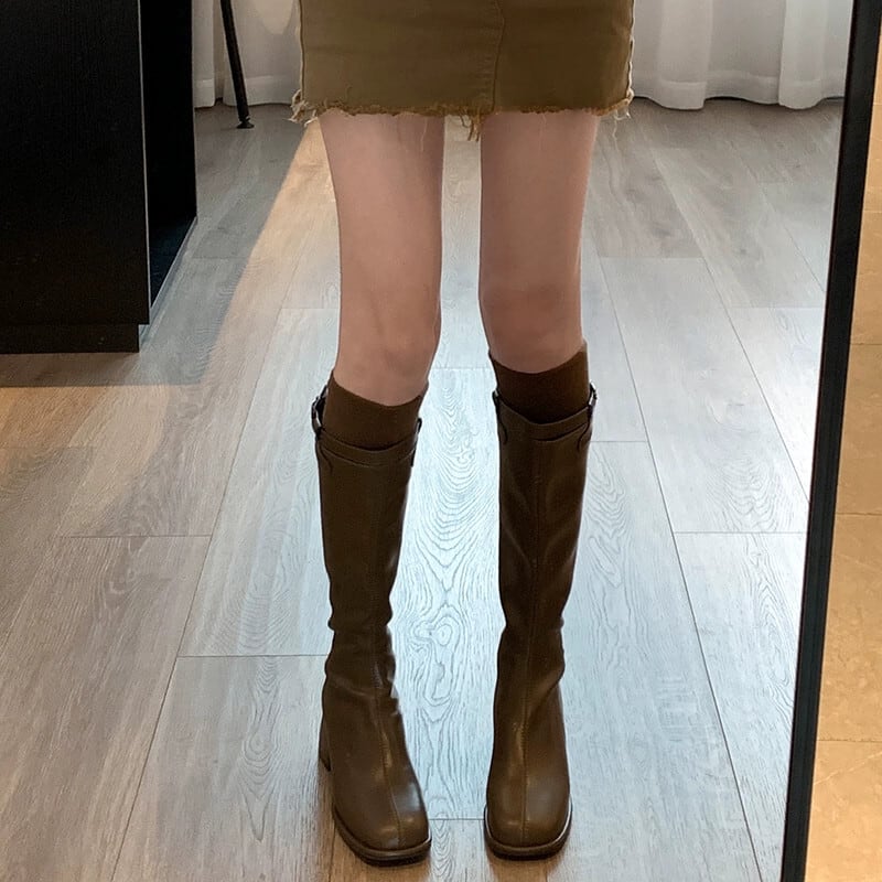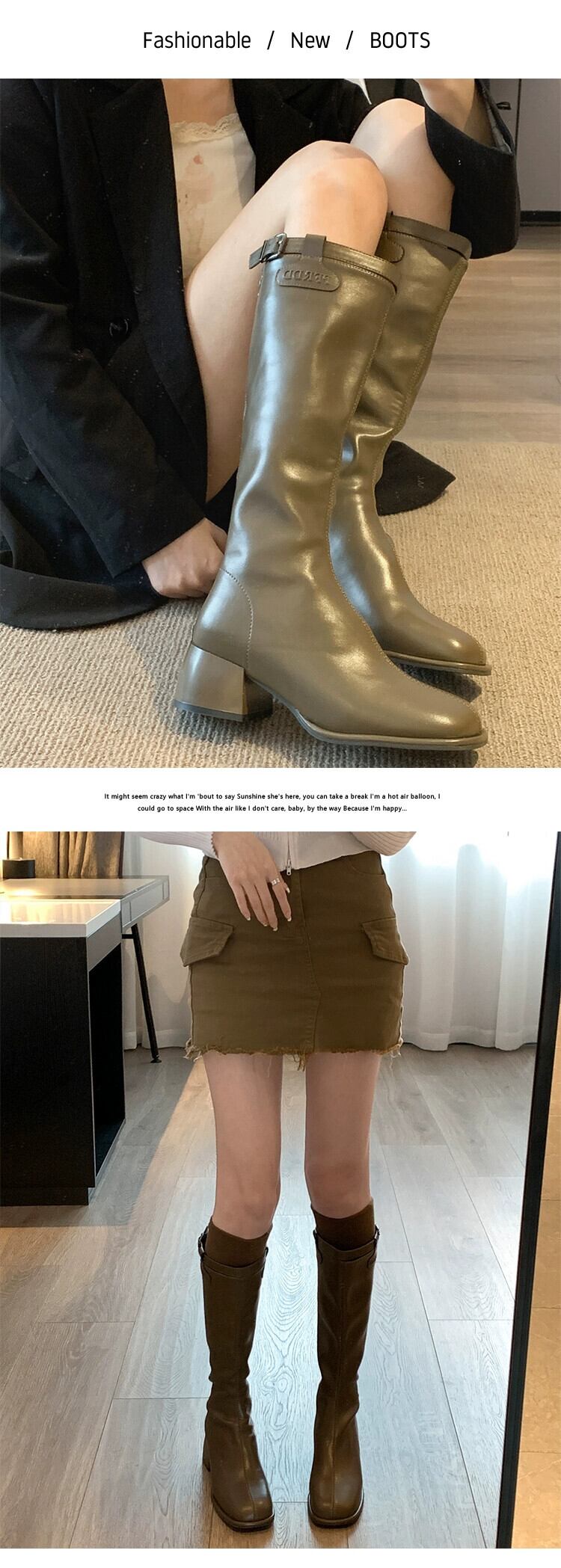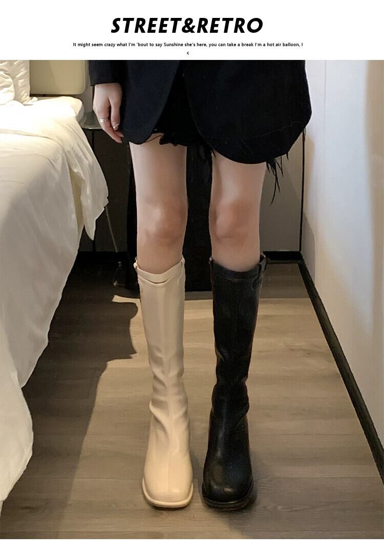 Jia Bujia レトロブーツ女性 2023 秋の新ファッションスリムスリムヒール太いヒールファッションブーツの女性 靴 シューズ オータム 秋物 jxjxf67938912067