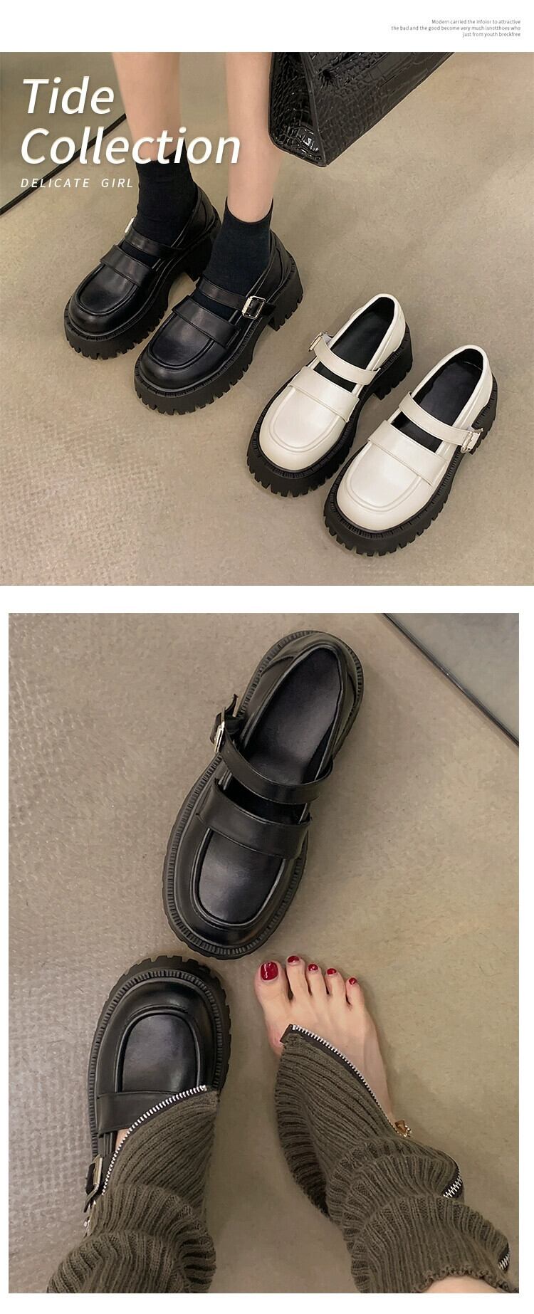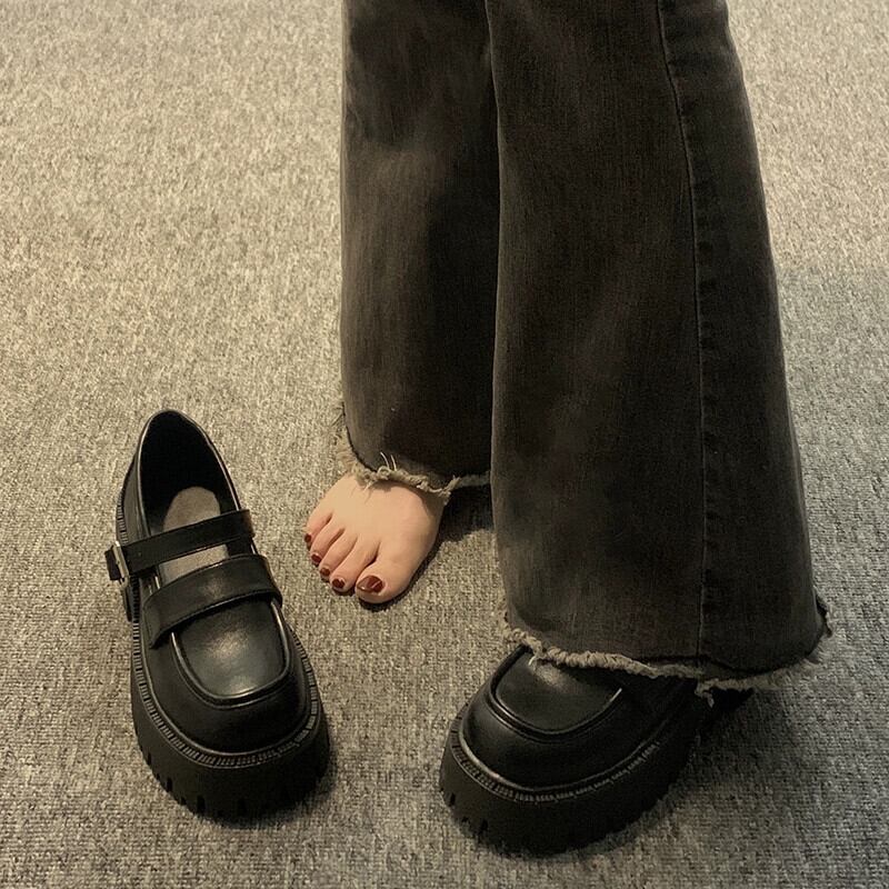 インターネットセレブの小さな革靴の女性 2023 春の新ファッションと多用途の小人厚底滑り止め ese メリージェーン靴 シューズ スプリング 春物 レザー jxjxf6292704476