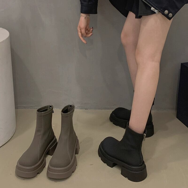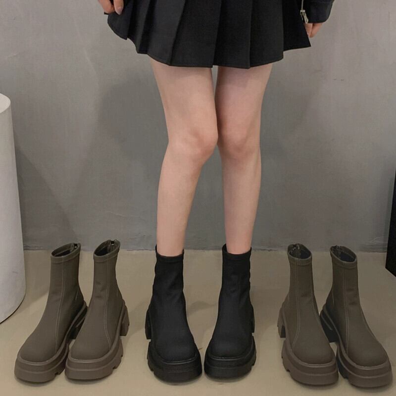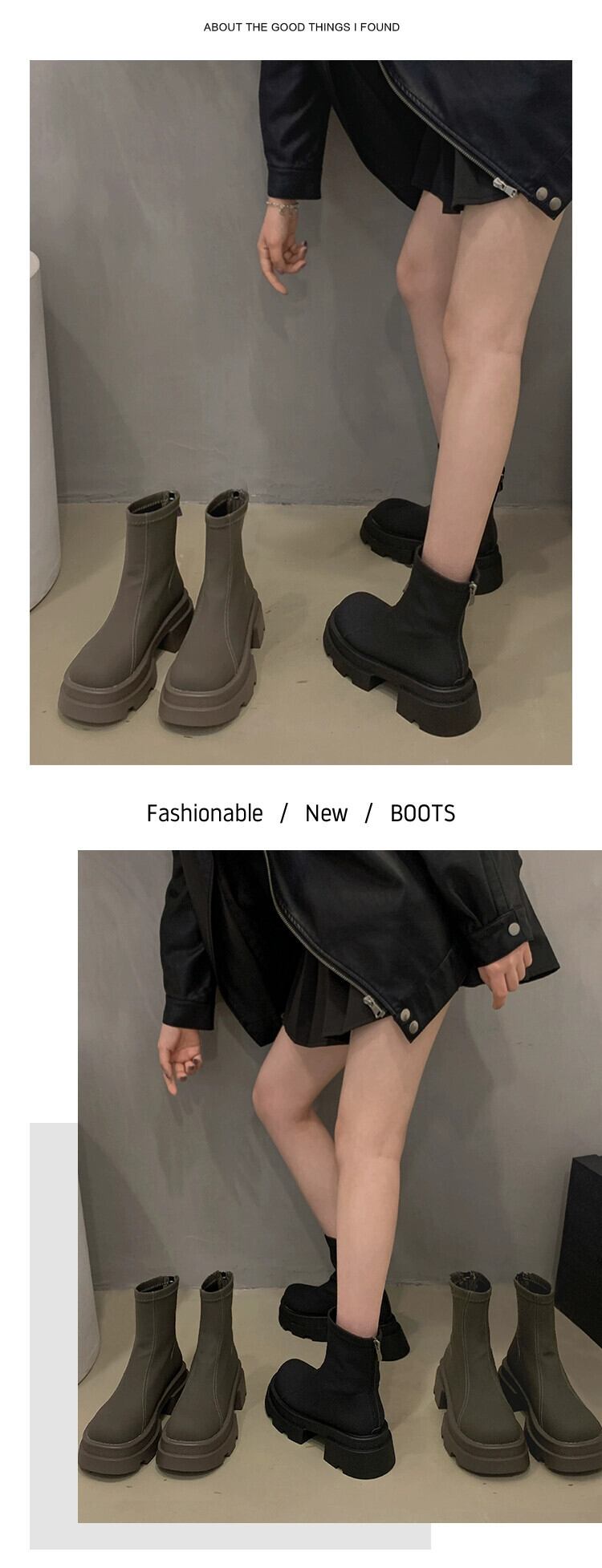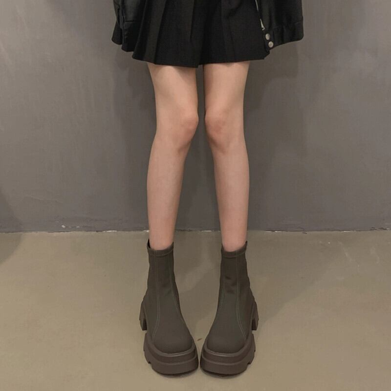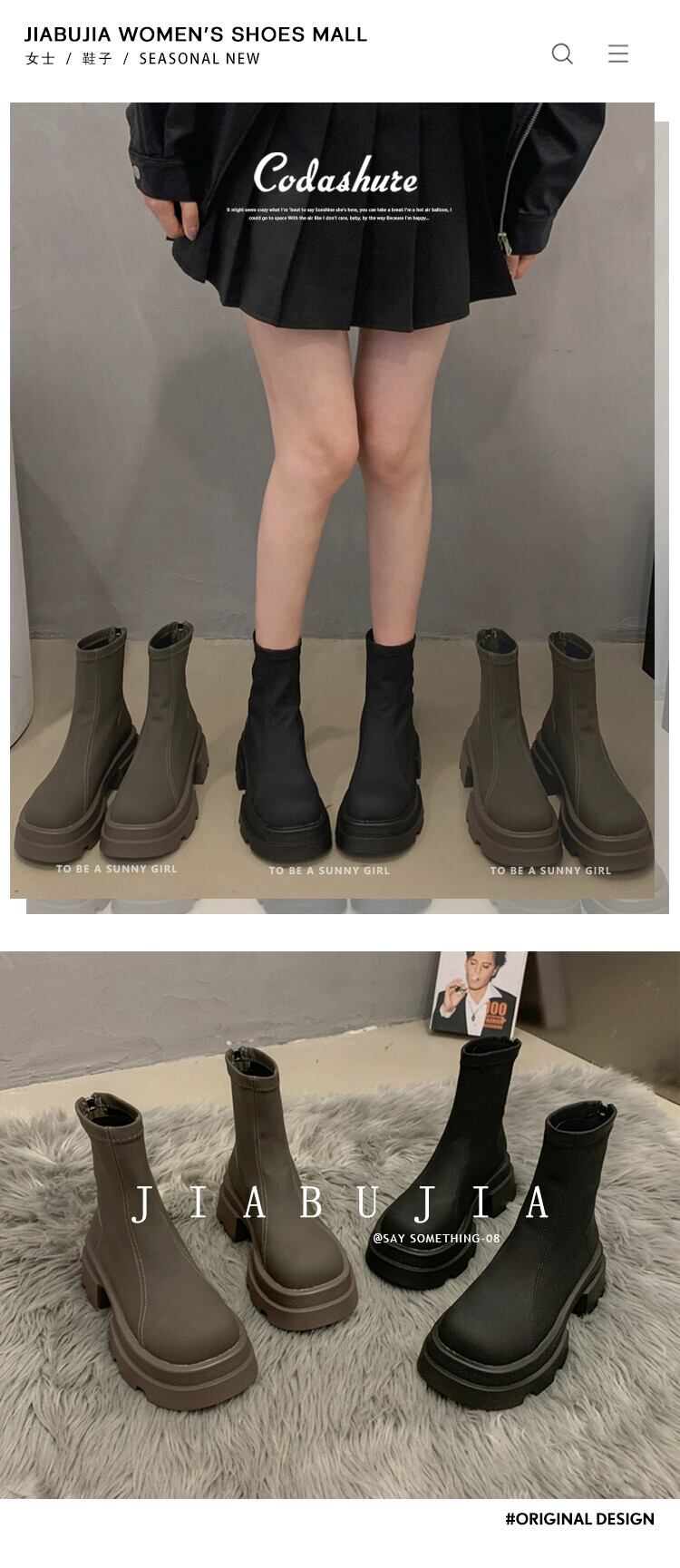 Jia Bujia レディース秋ショートブーツ 2023 レトロ多用途シンプルな気質増加太いヒールスリムブーツトレンド 靴 シューズ オータム 秋物 jxjxf44108935911