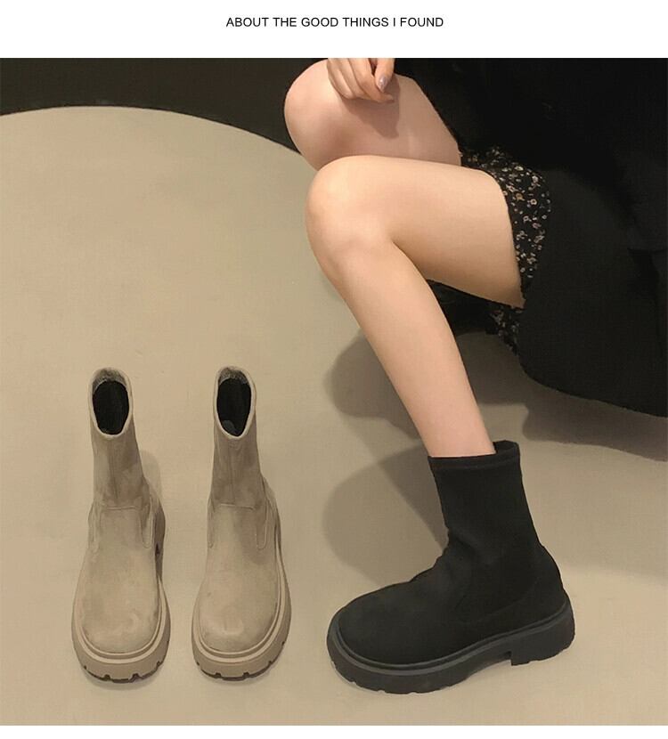 Jia Bufake ショートブーツ レディース 2023 秋多用途レトロ西洋スタイルスリム厚底弾性スリムブーツ 靴 シューズ エラスティック 伸縮 オータム 秋物 jxjxf93651722874