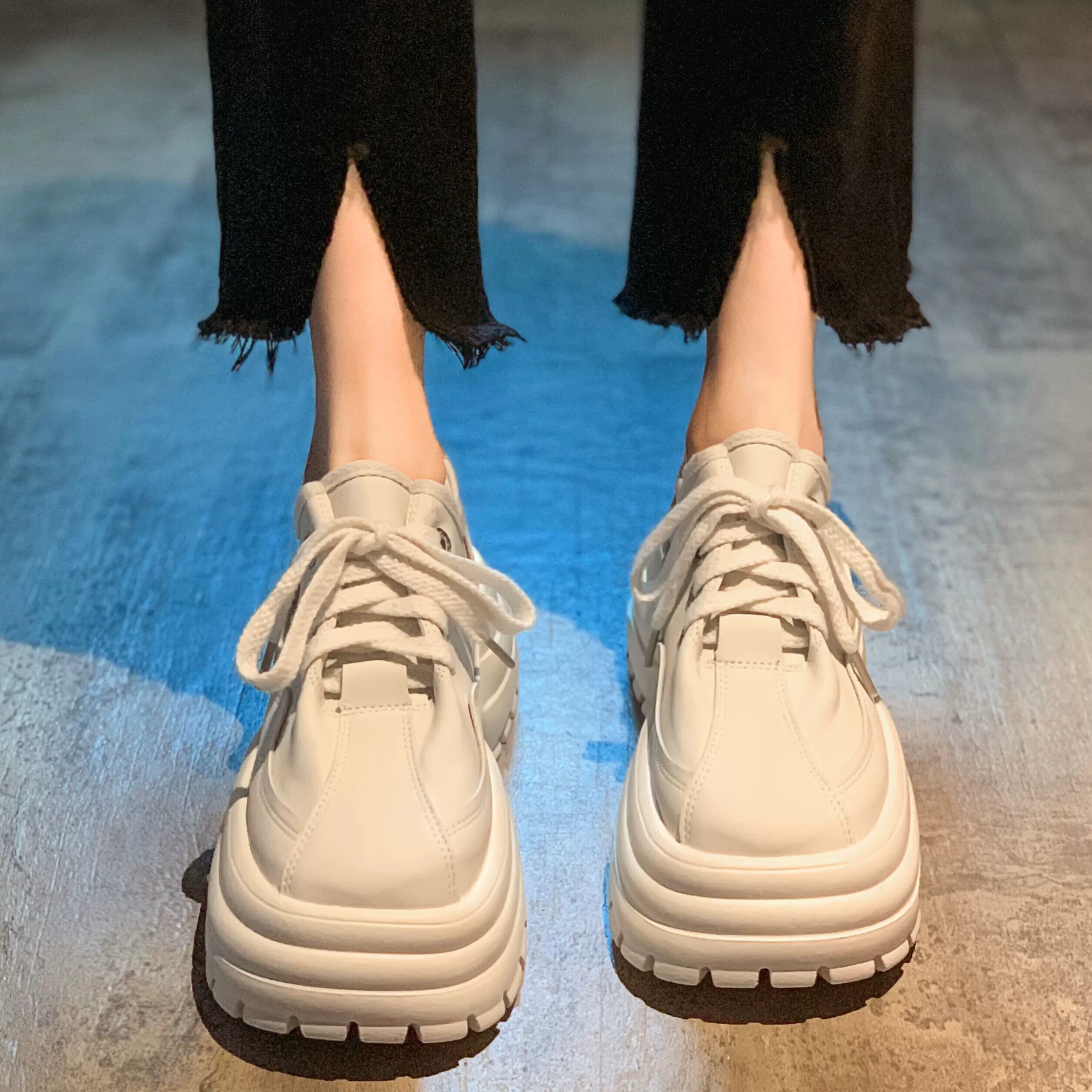 在庫あり - Jia Bujia - 2023 新しいトレンディなファッショナブルな多用途カジュアルスニーカー厚底レトロニッチ小さな革靴 シューズ レザー jxjxf55774835186