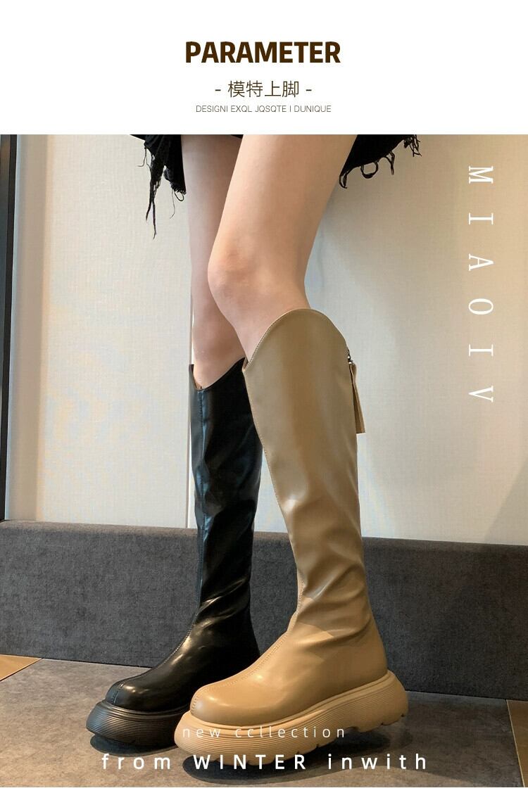 Jia Bujia 英国スタイルのブーツの女性 2023 夏の新ファッション多用途レトロハンサム厚底騎士ブーツ 靴 シューズ サマー 夏物 jxjxf30928256365