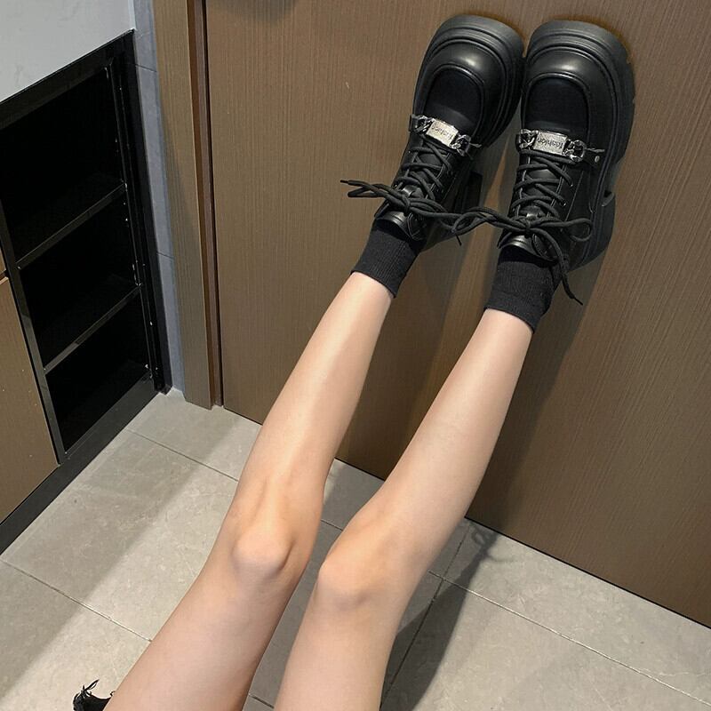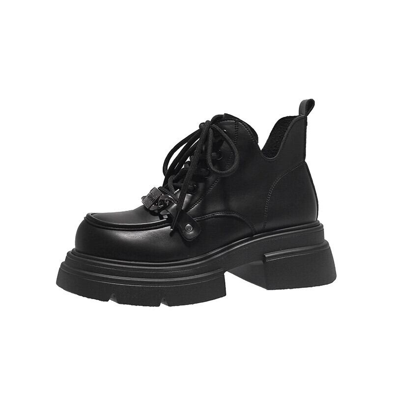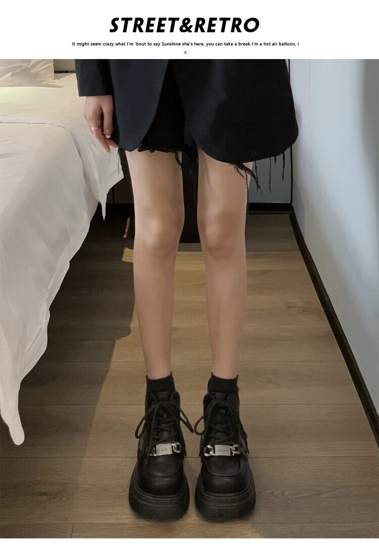 Jia Bujia マーティンブーツレディース 2023 秋の新作スタイルハンサム多用途メタルファッション太いヒール黒ショートブーツ ブラック 靴 シューズ jxjxf13593101193