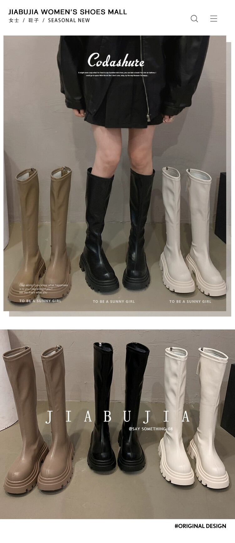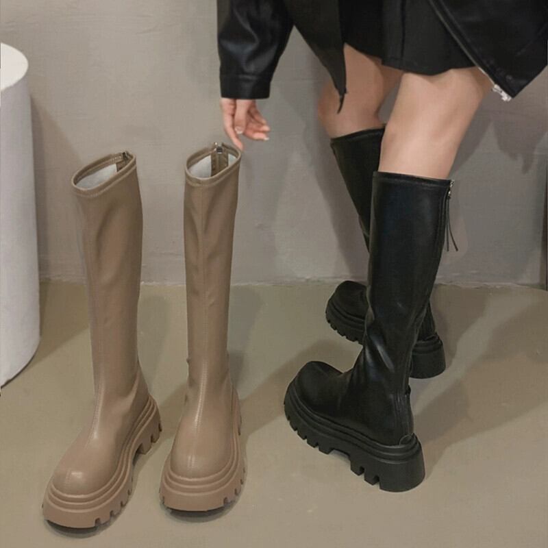 Jia Bujia 厚底ブーツの女性、2023 秋の新しいスタイル、フランスのレトロな気質、ファッショナブルでシンプルでスリムなブーツ 靴 シューズ オータム 秋物 jxjxf30536475698