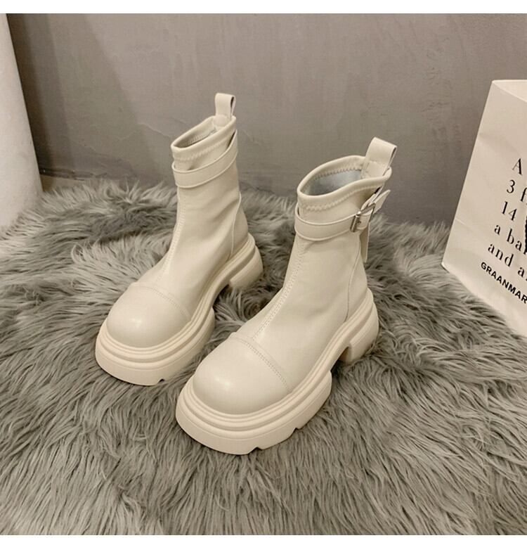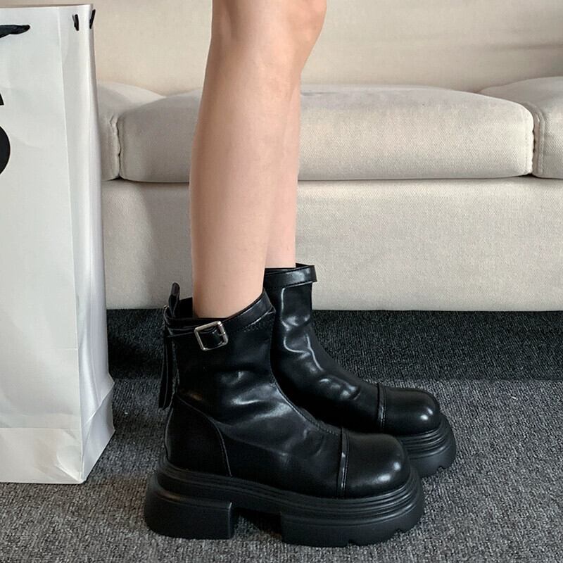 Jia Bujia レディース ショートブーツ 2023 秋スタイル ベルトバックル 万能厚底スリムブーツ 靴 シューズ オータム 秋物 ハーネス jxjxf16656923643