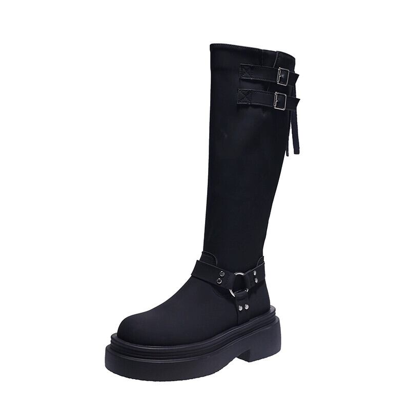 Jia Bujia 厚底ブーツの女性 2023 秋の新作多用途シンプルなレトロな気質カジュアルスリムブーツ 靴 シューズ オータム 秋物 jxjxf79508994679