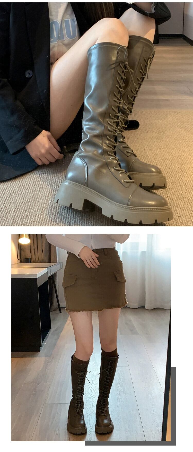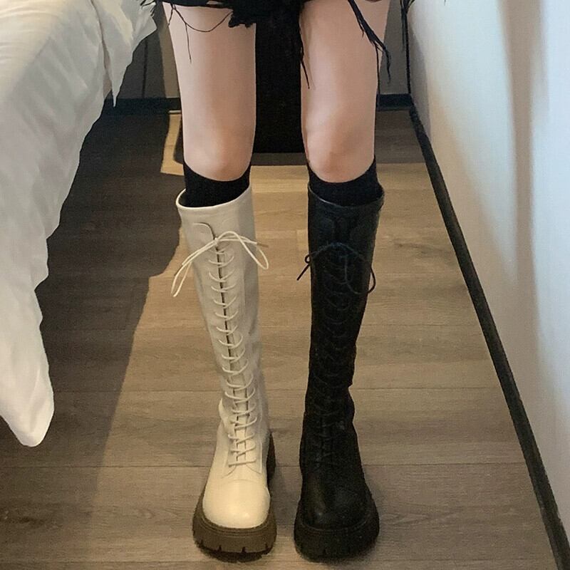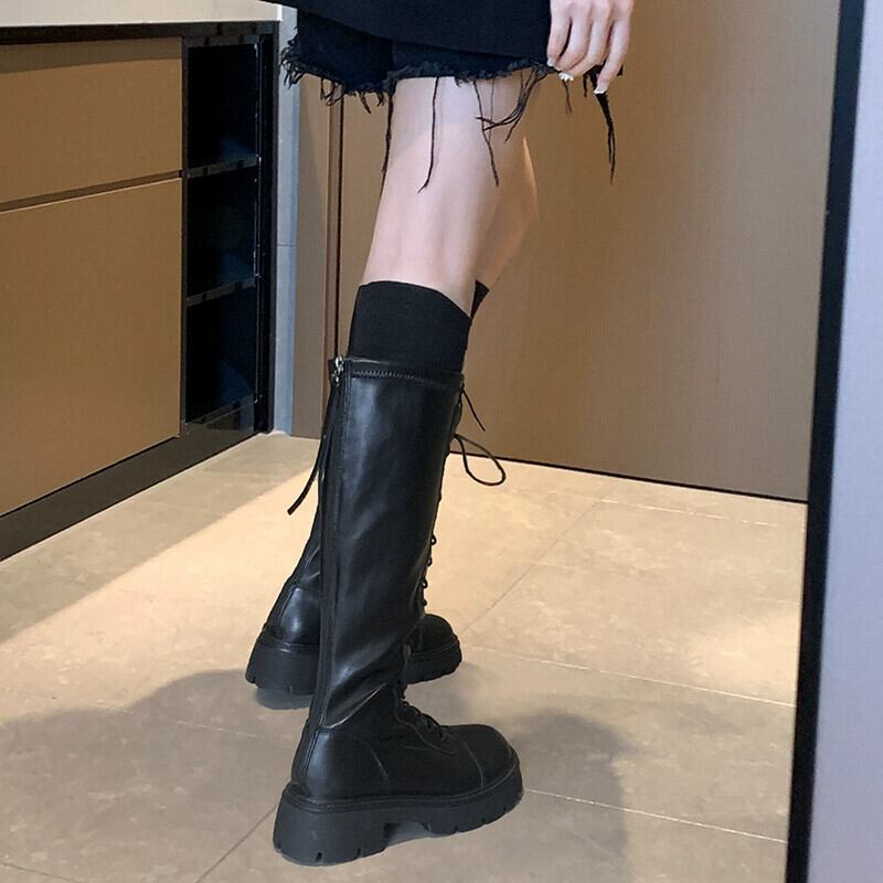 Jia Bufake ハイブーツの女性 2023 秋の新ファッション多用途レトロスリムでハンサムな英国スタイルのナイトブーツ 靴 シューズ オータム 秋物 jxjxf82074052846