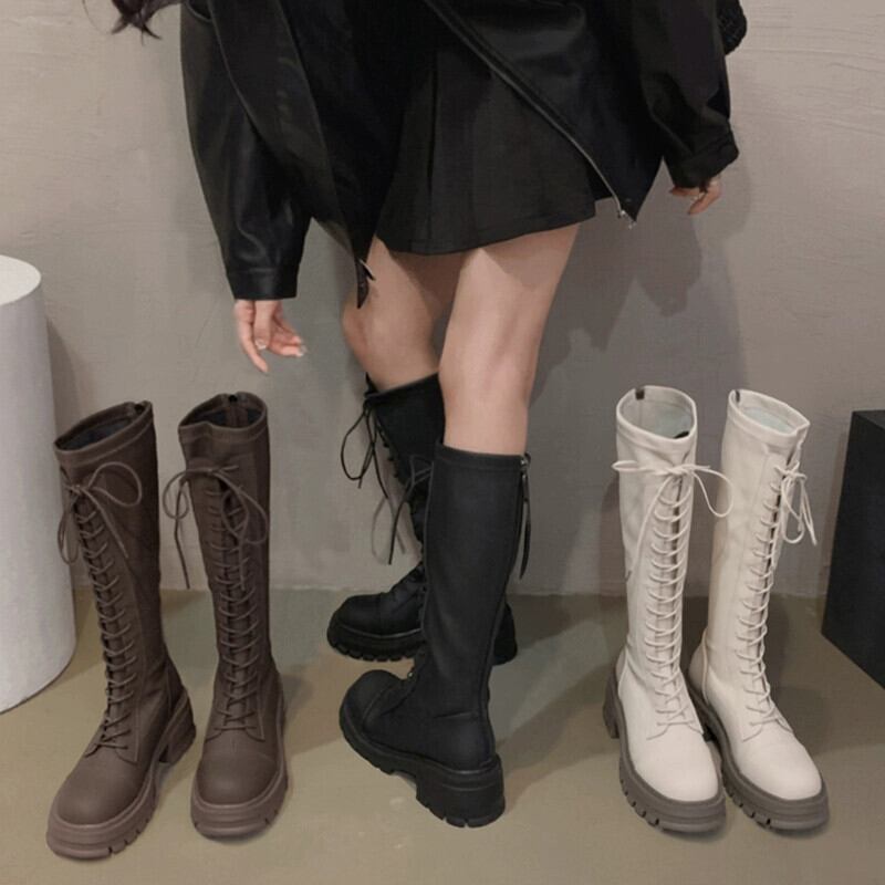 Jia Bujia ニーハイブーツの女性 2023 秋の新ファッション多用途レトロハンサム太いヒール騎士ブーツトレンド 靴 シューズ オータム 秋物 jxjxf52017617301