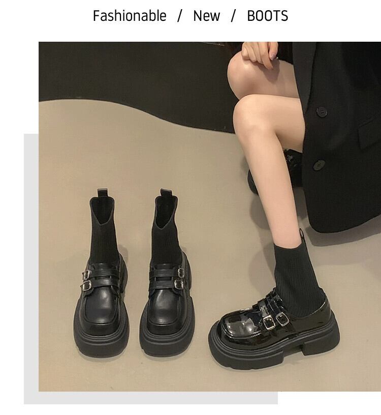 Jia Bujia 弾性ショートブーツ女性 2023 秋の新ファッション多用途レトロニット厚底ファッショナブルな靴下とブーツトレンディ シューズ エラスティック 伸縮 オータム 秋物 タイツ ストッキング ソックス jxjxf15451876433