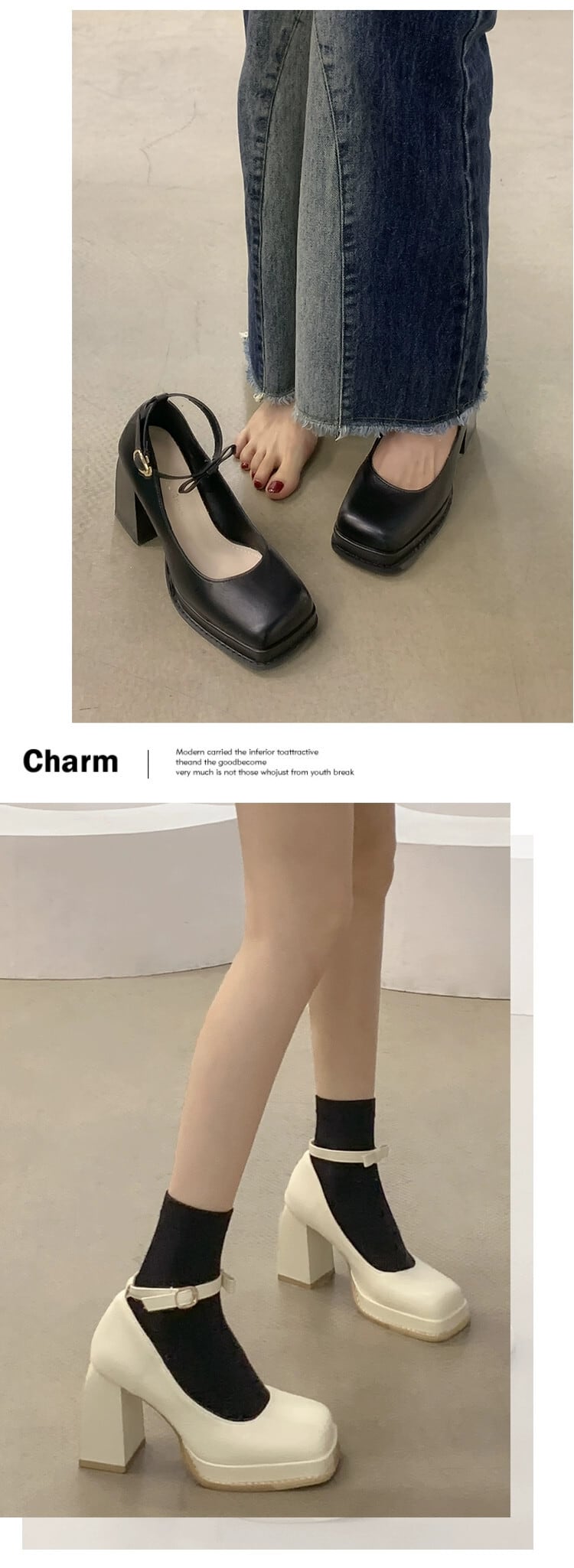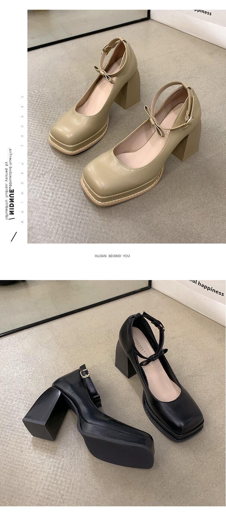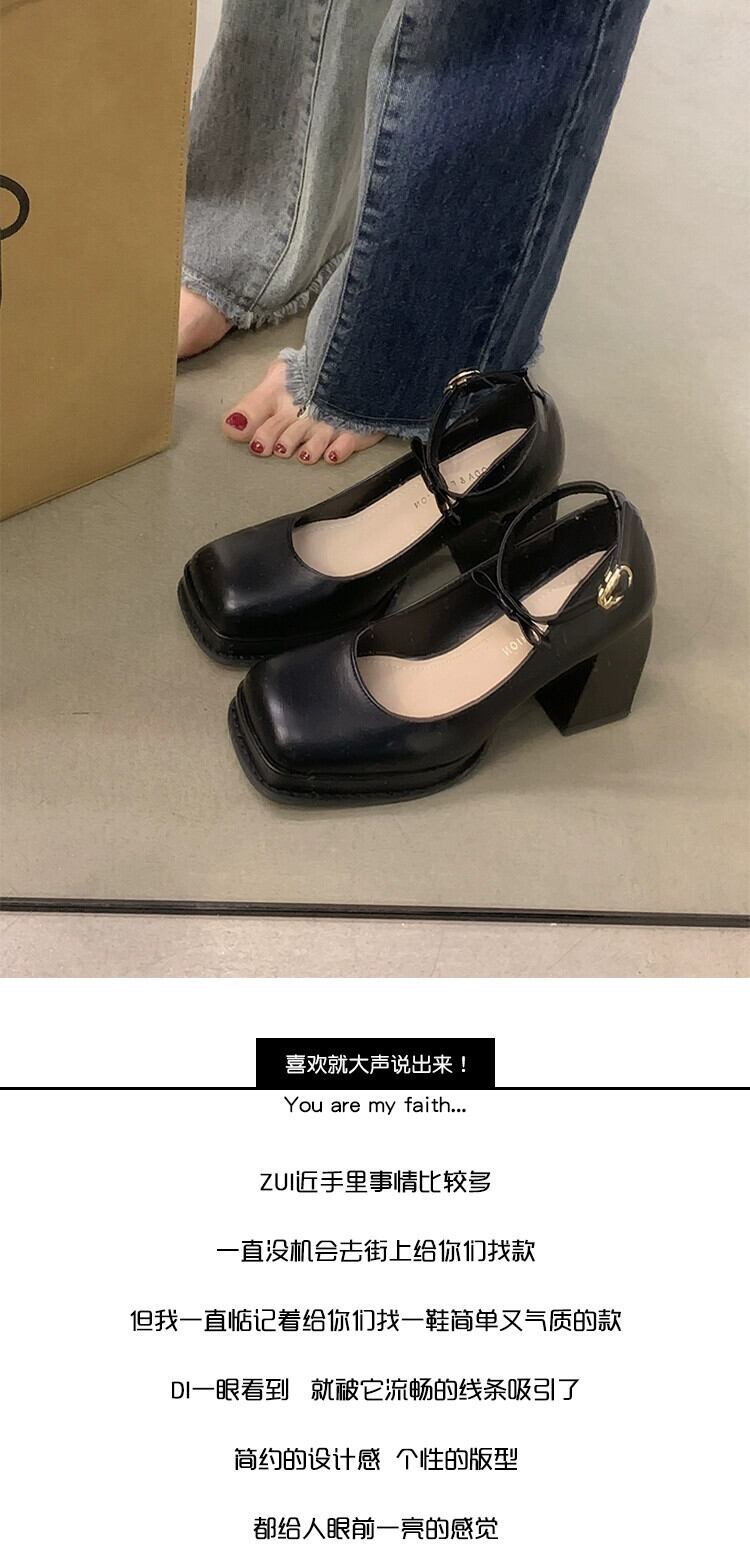 メリージェーンシューズ レディース 2023 春 万能スクエアトゥ 太いヒール スモールヒール フレンチスモールレザーシューズ 靴 スプリング 春物 スクウェア jxjxf25394841213