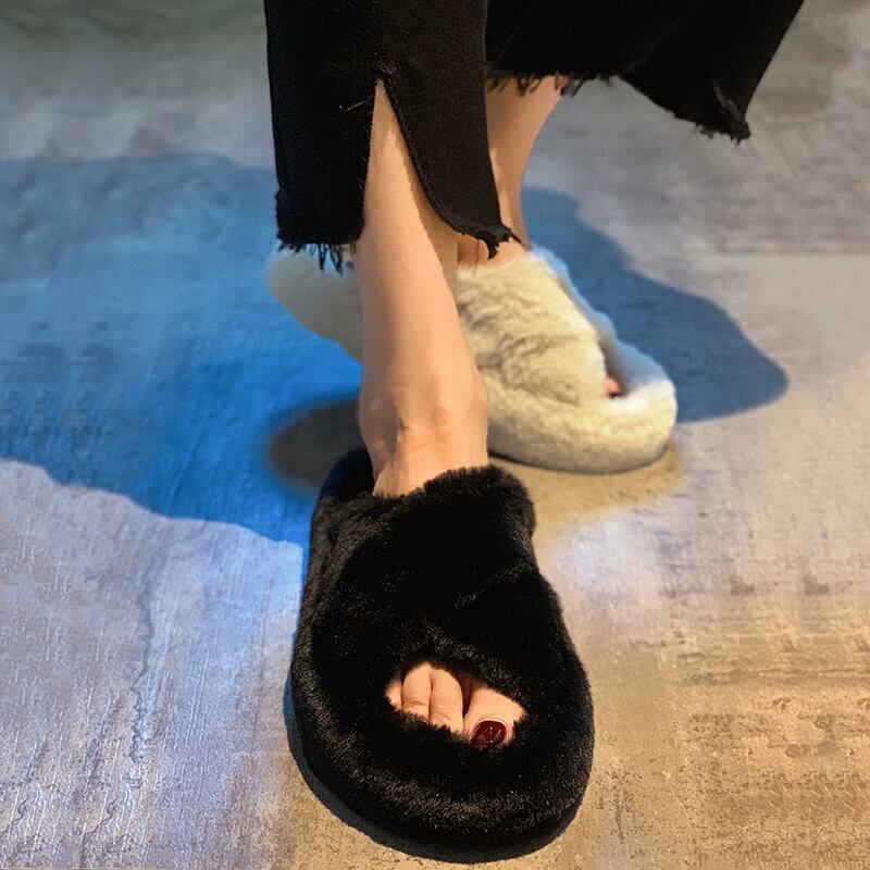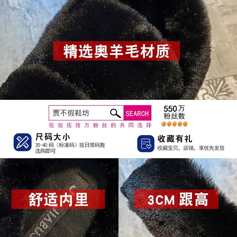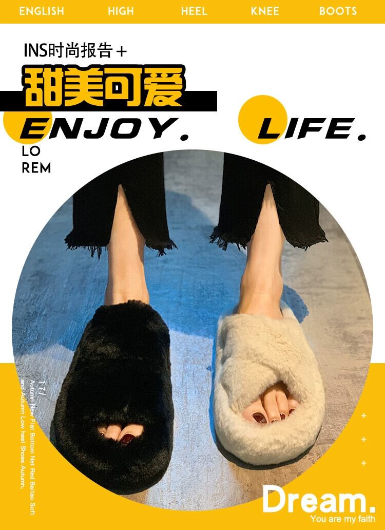 Jia Bu のフェイクファーリースリッパレディースアウターウェア 2023 秋の新スタイル超多用途レトロ comtable 厚底ワンラインスリッパトレンディ ミュール 靴 シューズ オータム 秋物 jxjxf82738277741