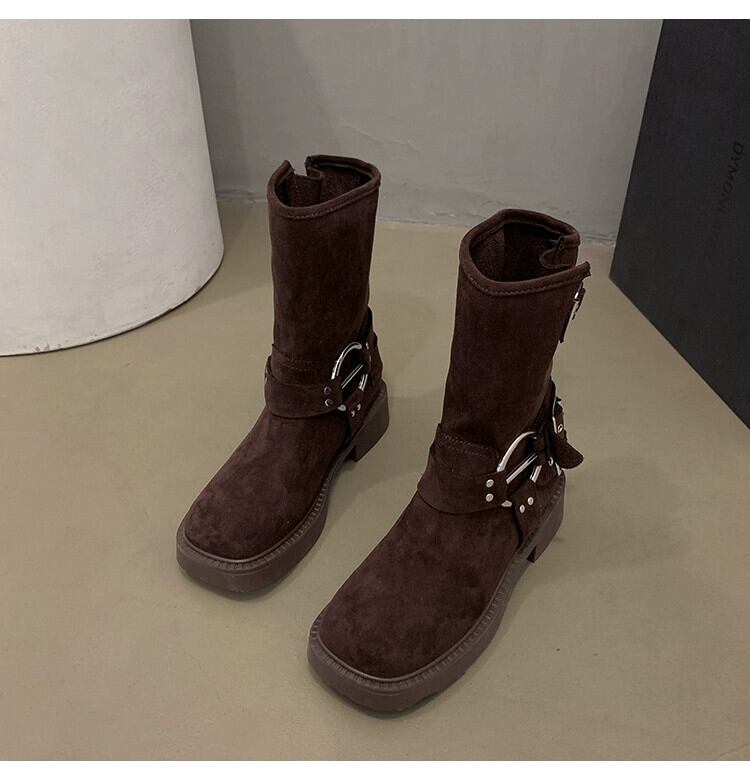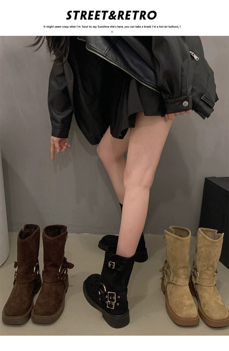 Jia Bujia ブーツ レディース ショートブーツ 2023 秋多用途レトロハンサム太いヒールストリートオートバイブーツ 靴 シューズ オータム 秋物 jxjxf36096347841