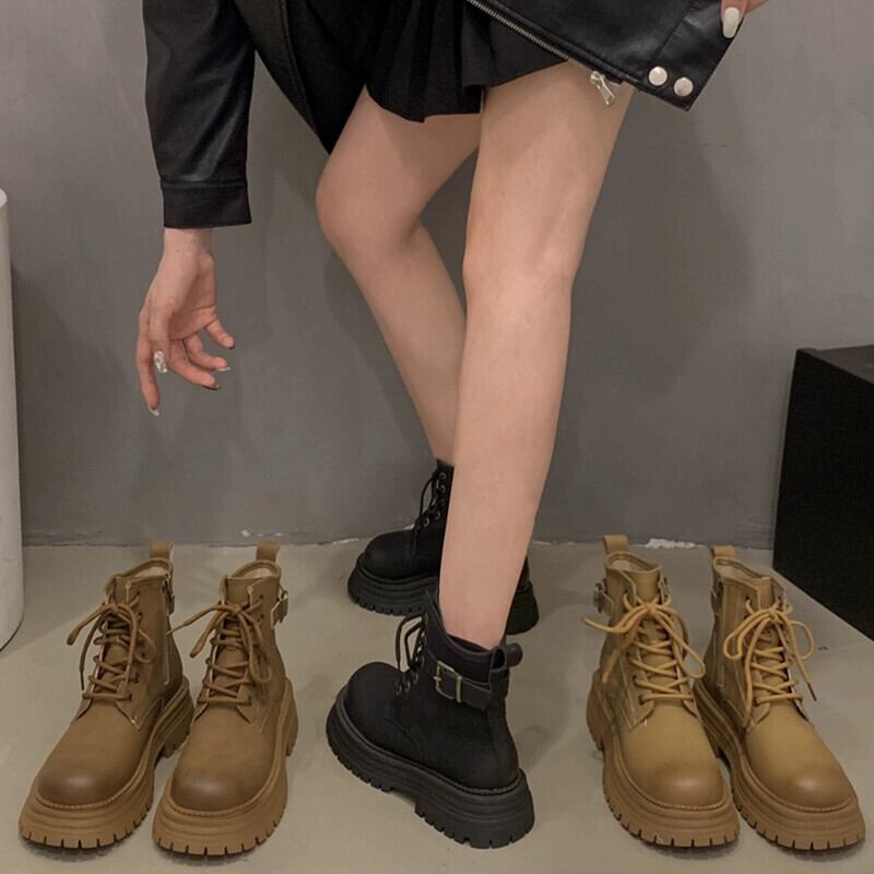 Jia Bujia レディース ショートブーツ 2023 秋の新ファッション多用途レトロハンサム厚底カジュアルマーティンブーツトレンド 靴 シューズ オータム 秋物 jxjxf49800933874