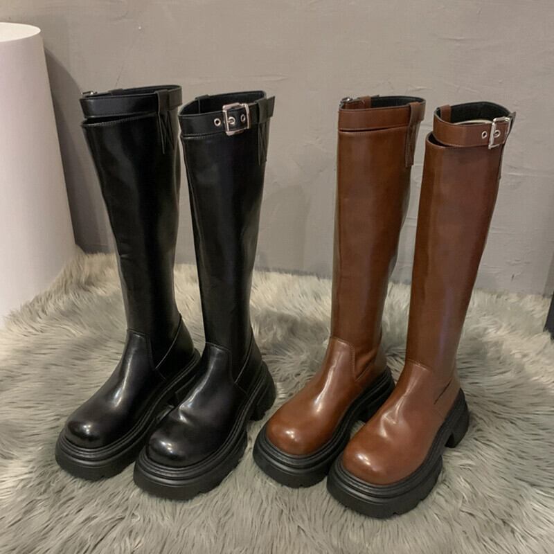 Jia Bujia 秋の女性のブーツ 2023 秋の新作ファッションフランスのレトロな気質厚底騎士ブーツ 靴 シューズ オータム 秋物 jxjxf91986970673