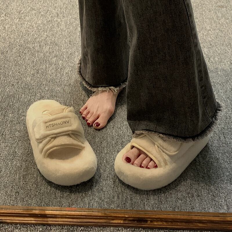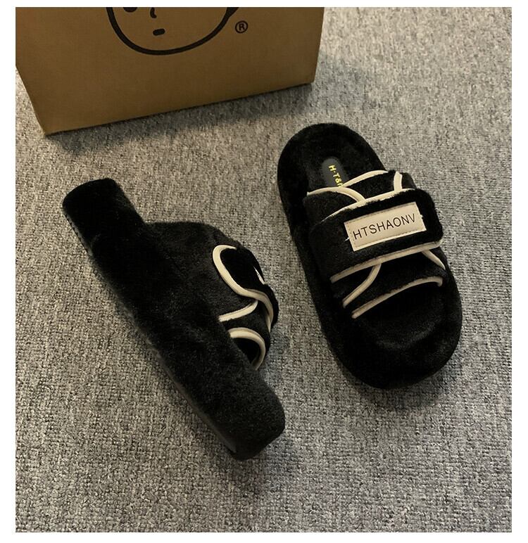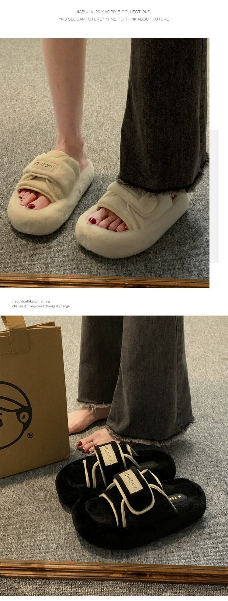 Jia Bu のフェイクファーリースリッパレディースアウター 2023 秋の新ファッション多用途レトロなスタイルの厚底ワンラインスリッパトレンディ ミュール 靴 シューズ オータム 秋物 jxjxf60579056612
