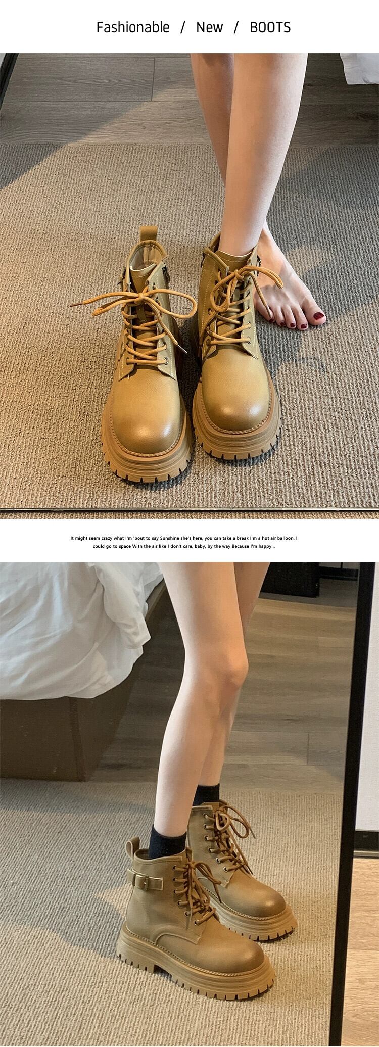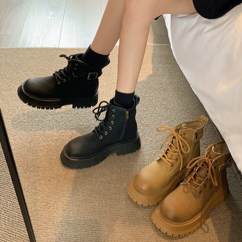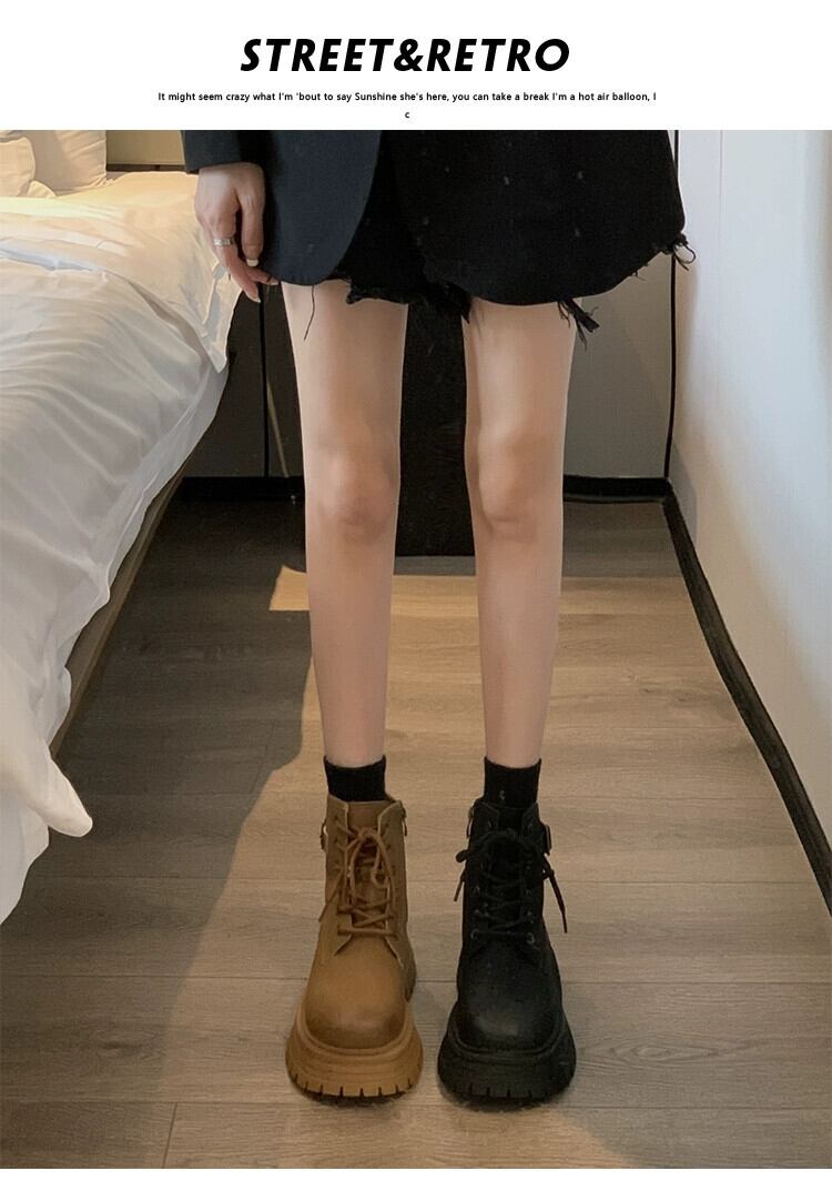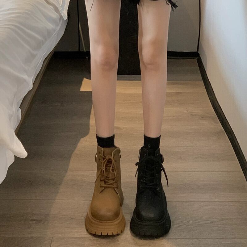 Jia Bufake マーティンブーツ女性の英国スタイル 2023 新しいビッグイエローブーツ小さな厚い底強化ショートブーツイエローブーツ 靴 シューズ jxjxf11716276542