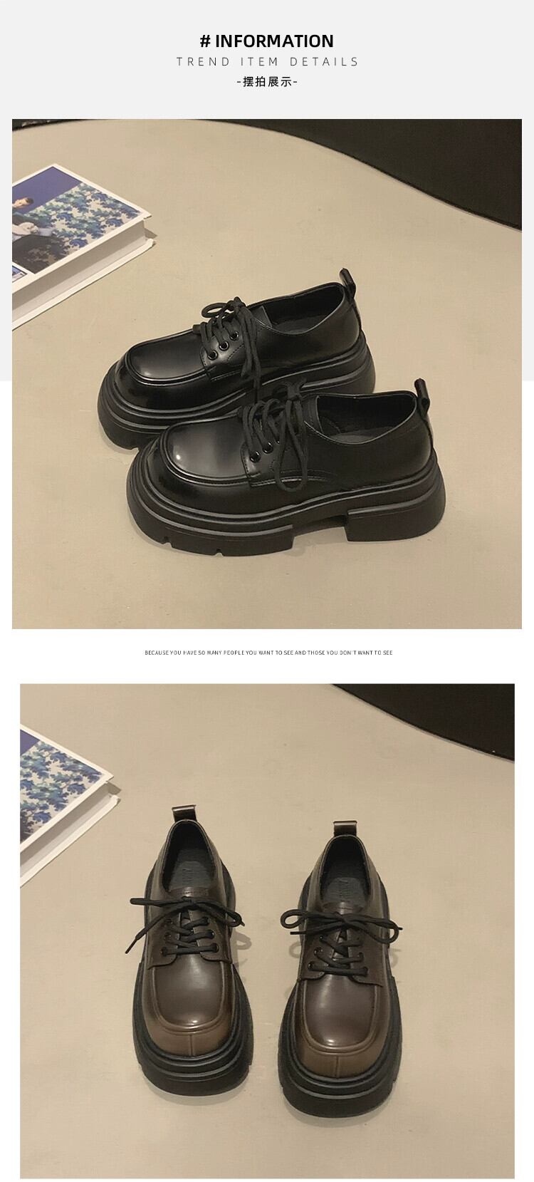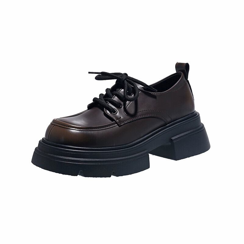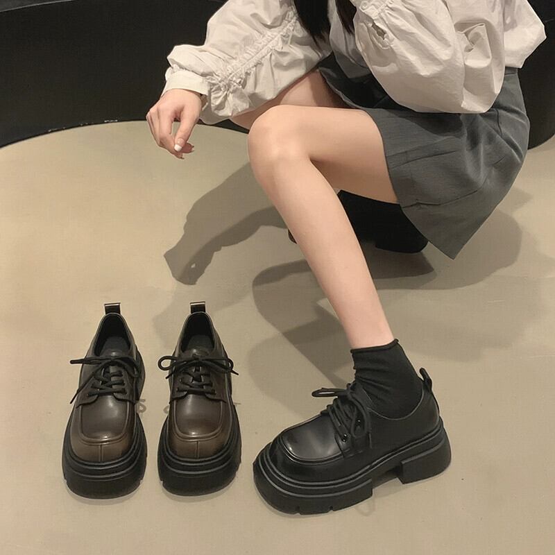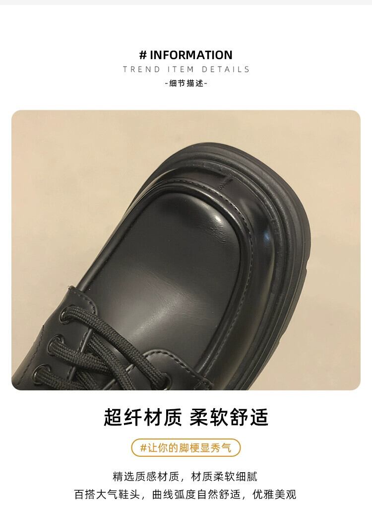 Jia Bujia スタイルの女性の 2023 秋の新スタイル多用途レトロ高揚太いヒール英国スタイルの小さな革靴 シューズ オータム 秋物 レザー jxjxf44046850870