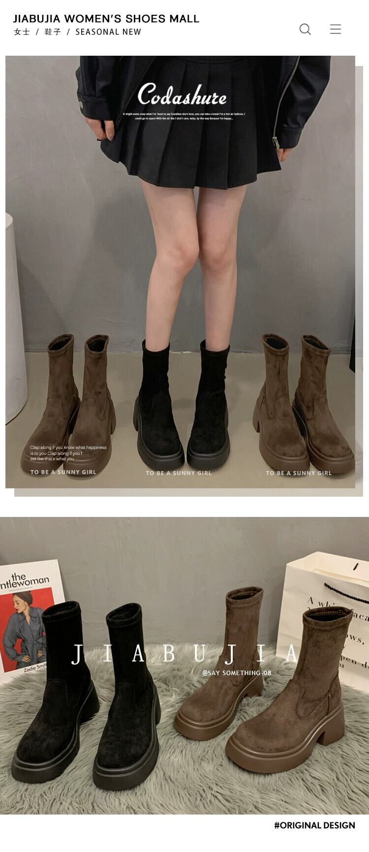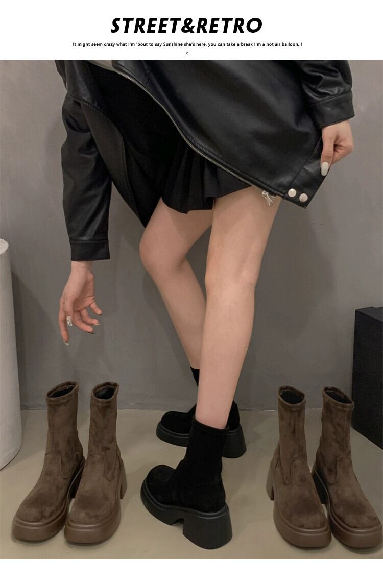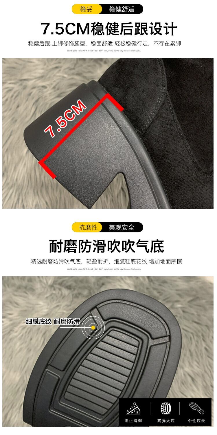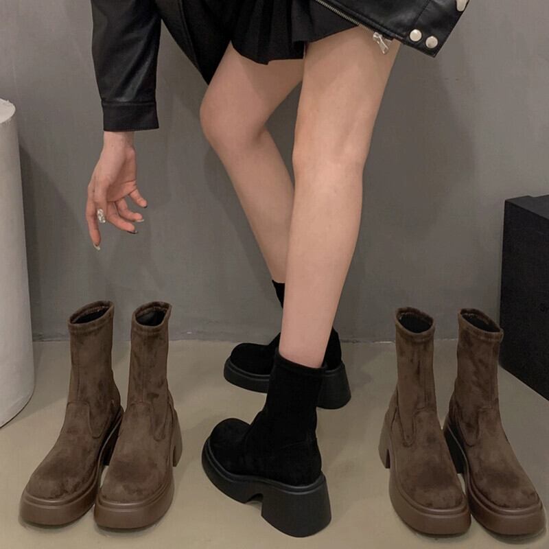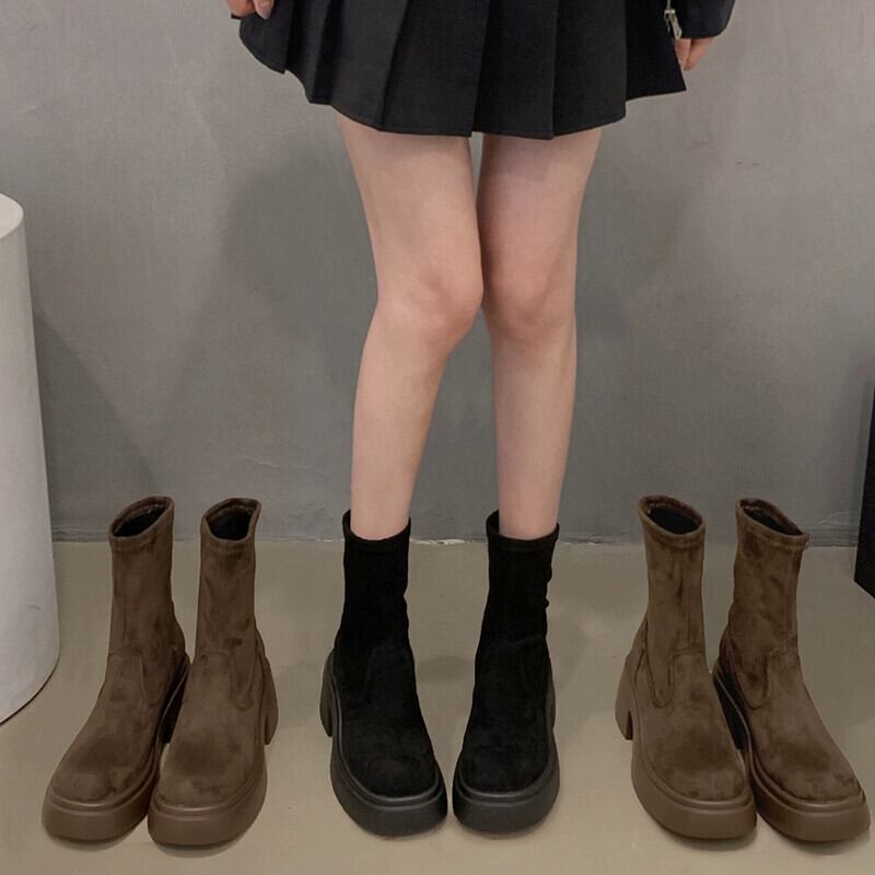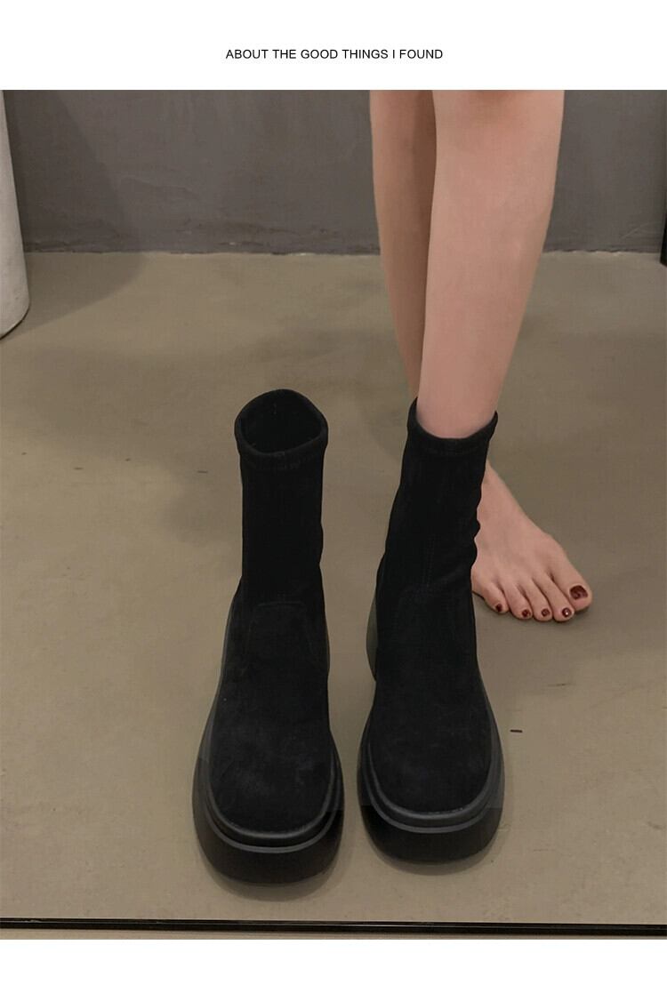 Jia Bujia 弾性ショートブーツの女性 2023 新しい秋のスタイルファッショナブルで多用途な小さな厚いヒールフレンチスリムブーツトレンディな 靴 シューズ エラスティック 伸縮 オータム 秋物 jxjxf35121898352