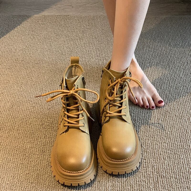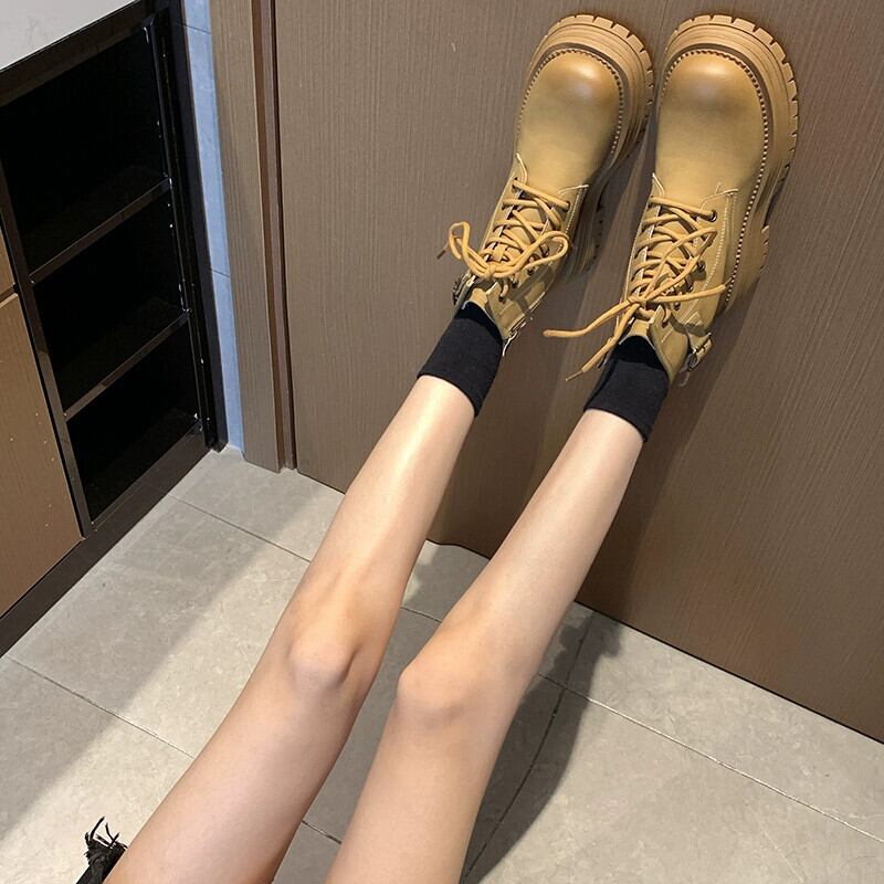 Jia Bujia 厚底マーティンブーツ レディース 2023 秋万能ハンサム人気太いヒール高めショートブーツ 靴 シューズ オータム 秋物 jxjxf35373956112