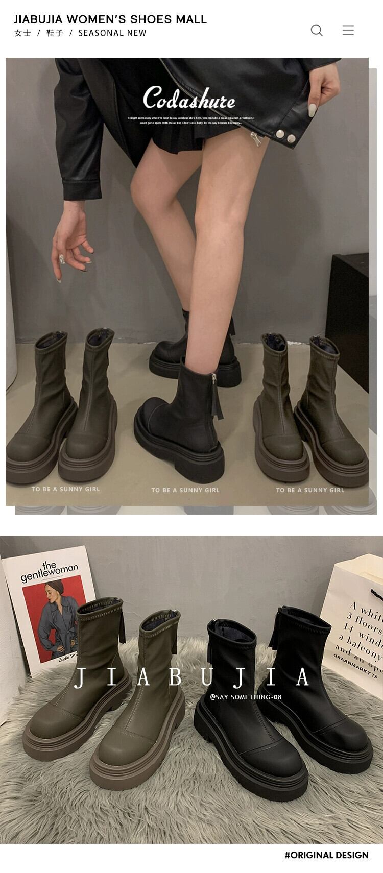 Jia Bufake ショートブーツ レディース 2023 秋トレンディ多用途レトロハンサム厚底ストリートスリムブーツ 靴 シューズ オータム 秋物 jxjxf28974051742