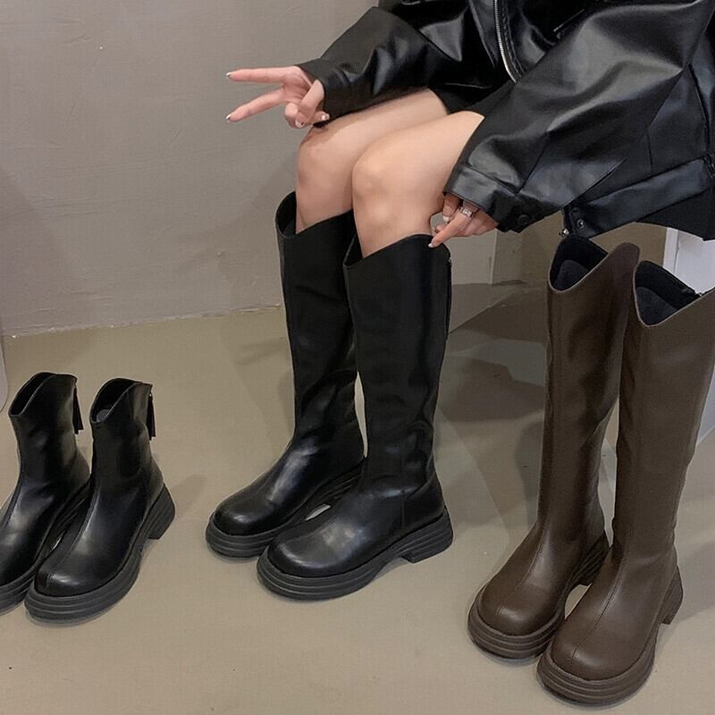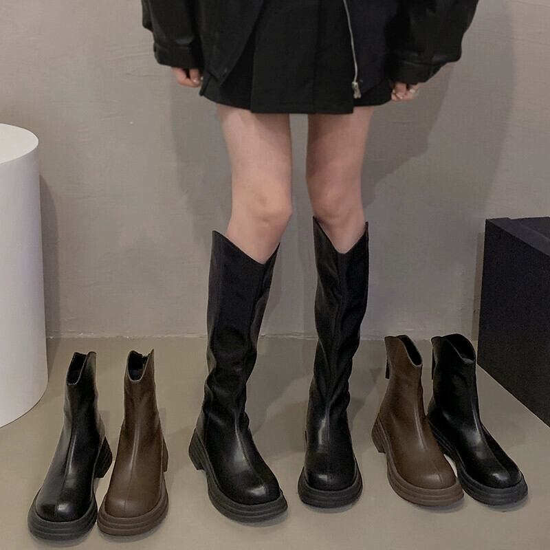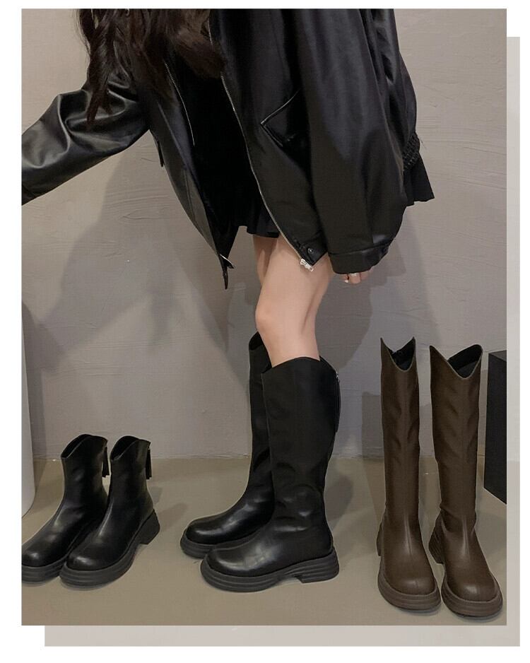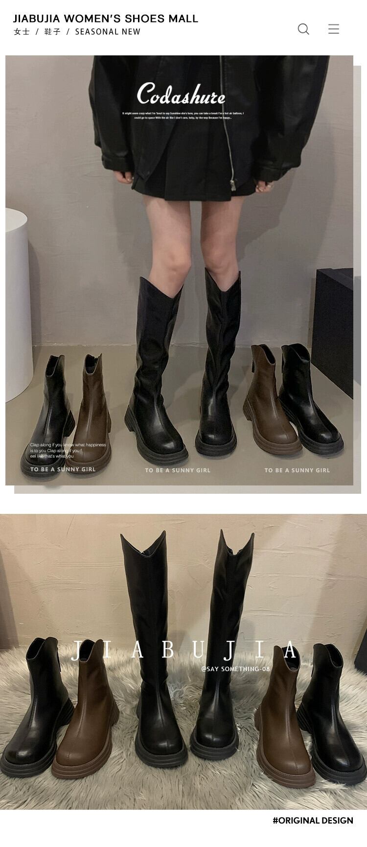 Jia Bujia ブーツ レディース ブーツ 2023 秋の新フレンチレトロスリム太いヒール膝以上のスリムブーツトレンディ 靴 シューズ オータム 秋物 jxjxf91379602177