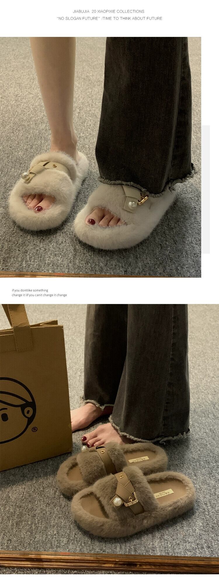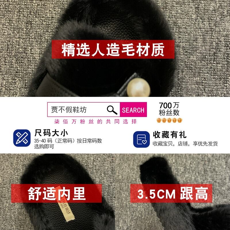 Jia Bu フェイクファーリースリッパ レディース 2023 秋 優しいレトロパール 厚い底 アウター フロップ ミュール 靴 シューズ オータム 秋物 真珠 jxjxf90715717795