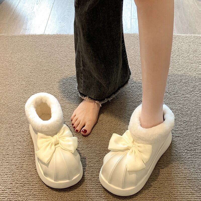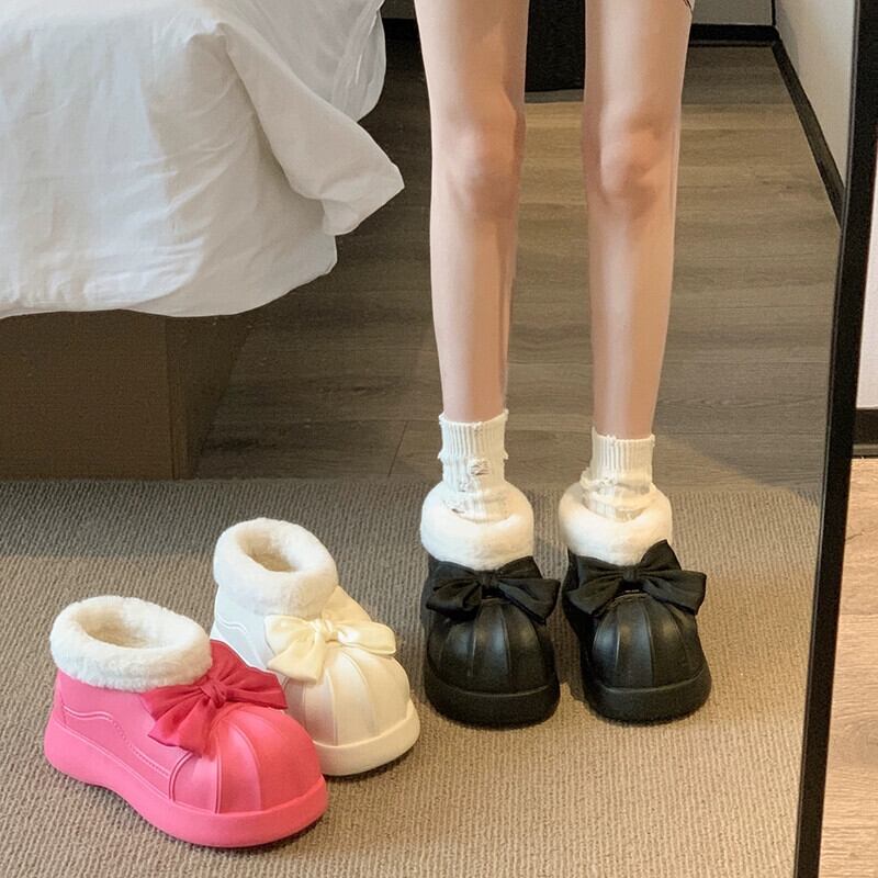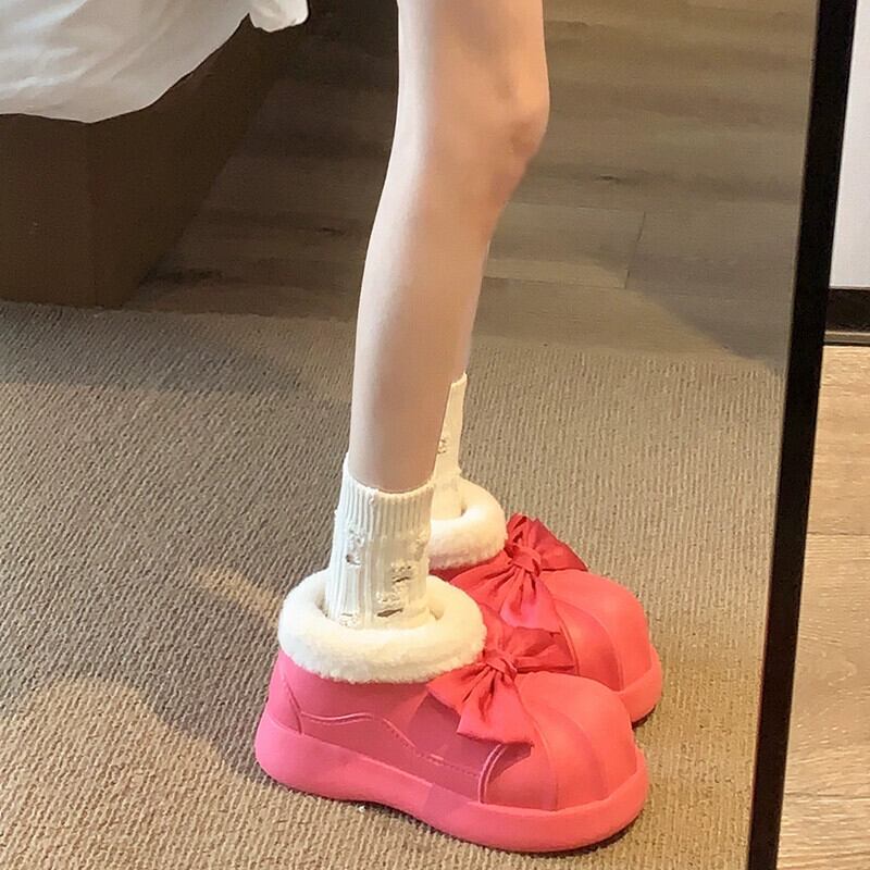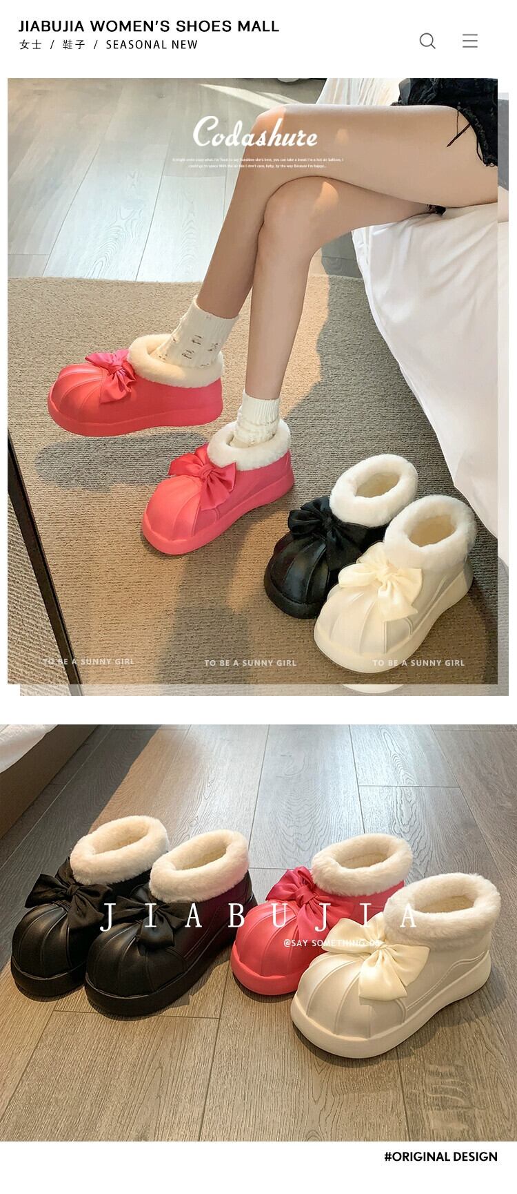 Jia Bujia 綿の靴の女性 2023 秋の新ファッション弓暖かい厚い底 comtable スノーブーツトレンド シューズ リボン コットン オータム 秋物 jxjxf33547995569