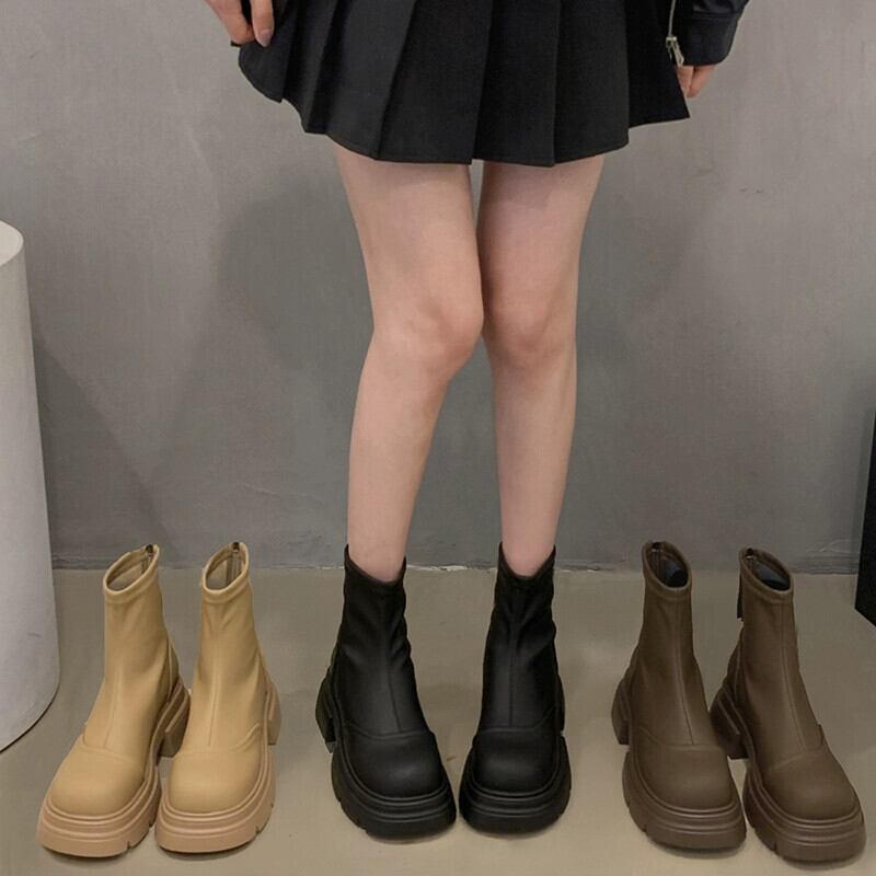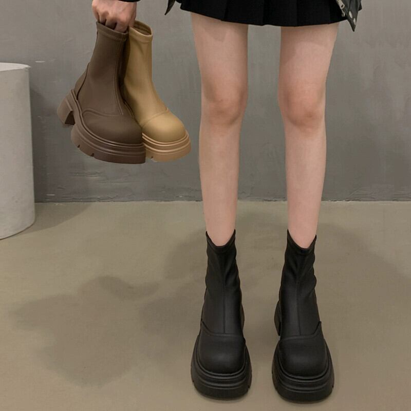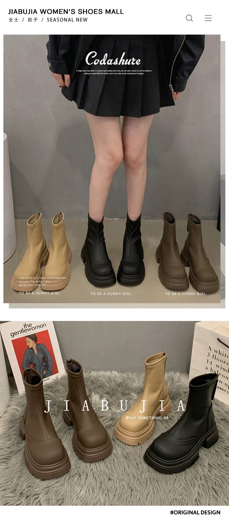 Jia Bufake ショートブーツ レディース 2023 秋トレンディ有能多用途レトロハンサム太いヒールストリートスリムブーツ 靴 シューズ オータム 秋物 jxjxf97567784861