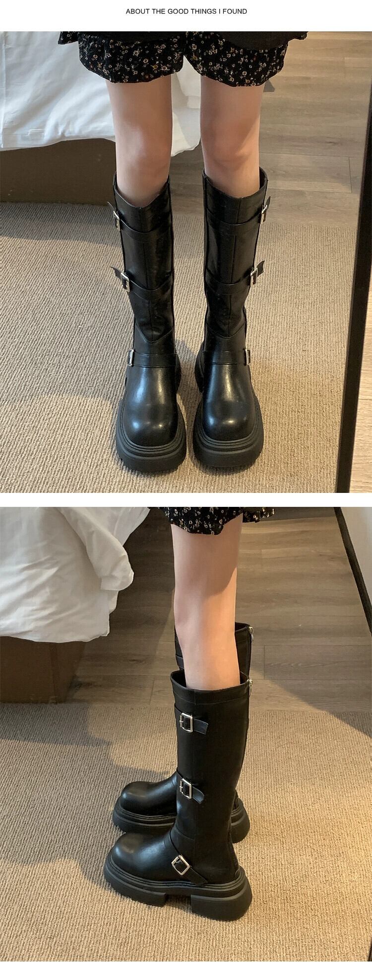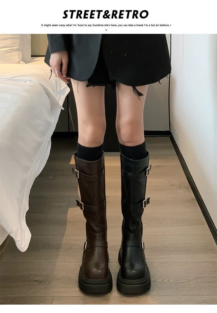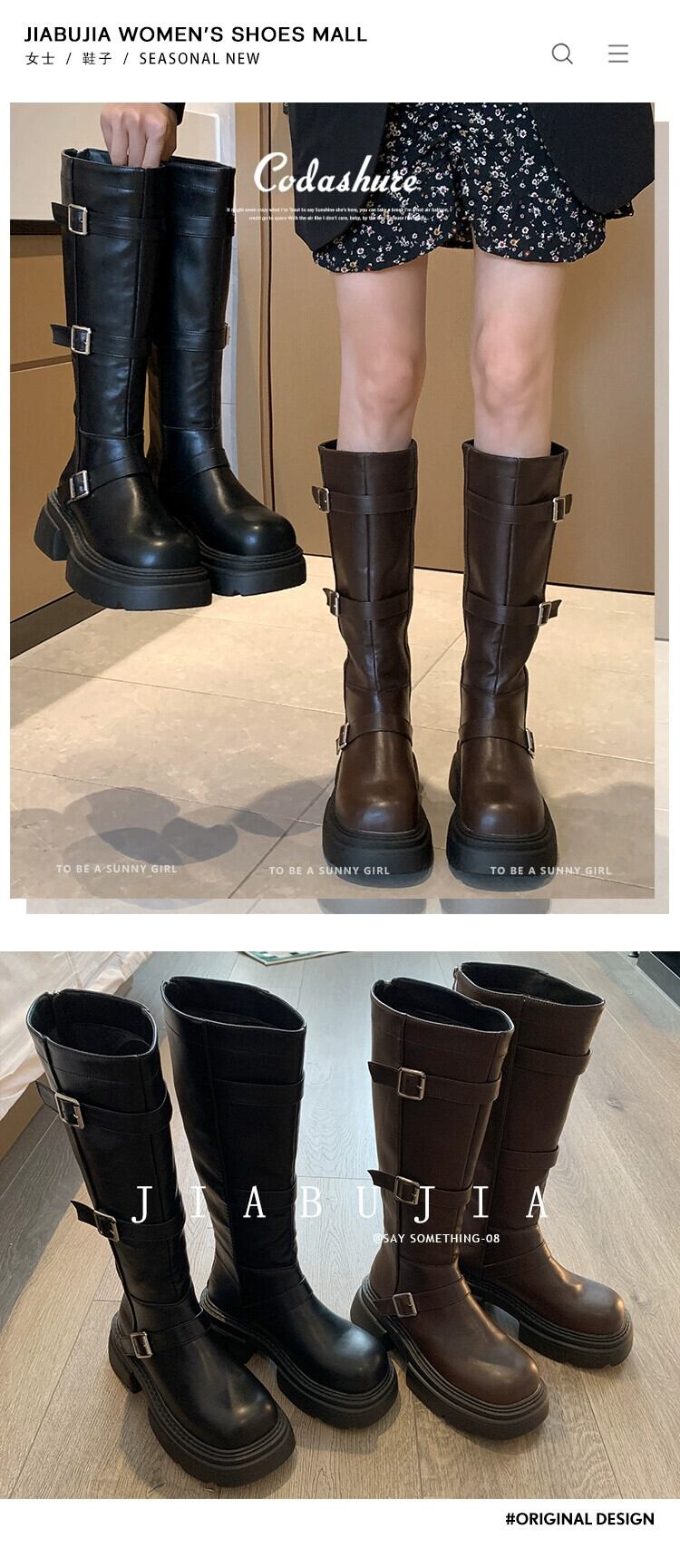 Jia Bujia インターネットセレブブーツの女性の 2023 秋の新スタイルファッショナブルなベルトバックル騎士ブーツのトレンドを高める 靴 シューズ オータム 秋物 ハーネス jxjxf78063986228