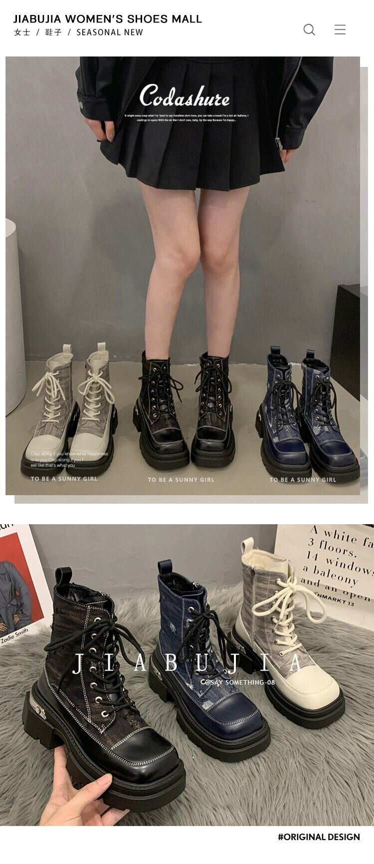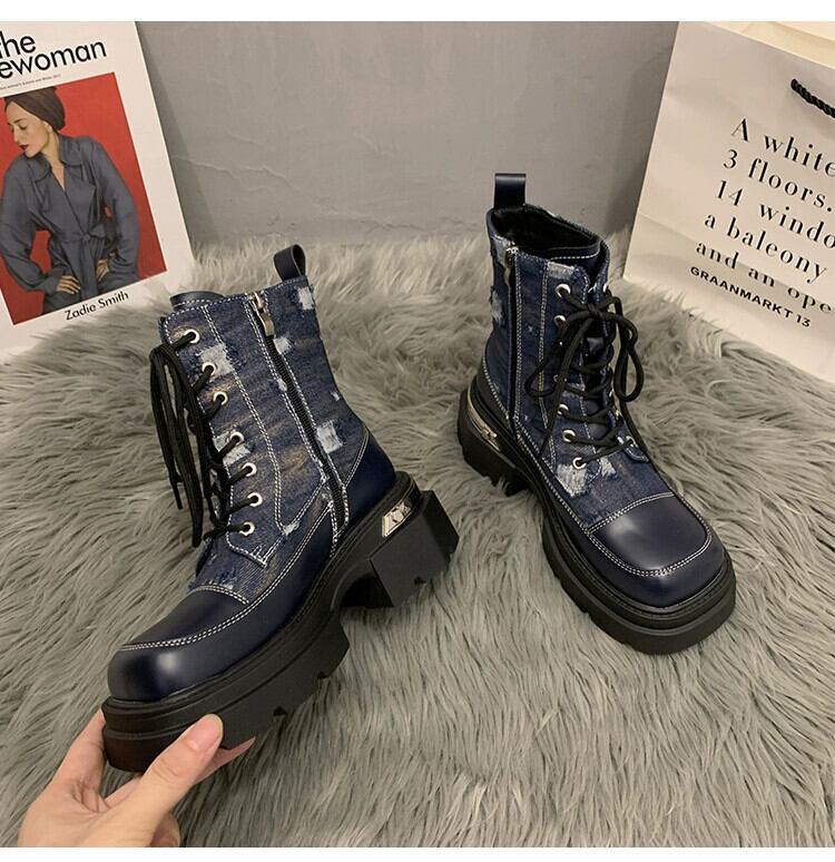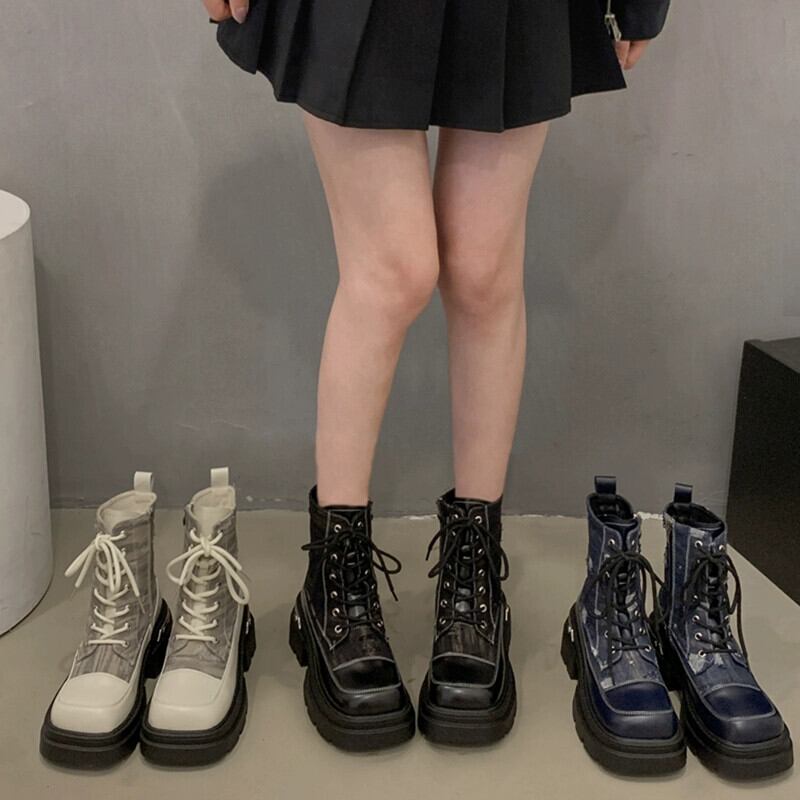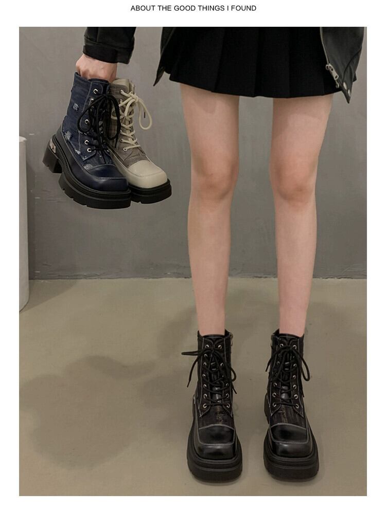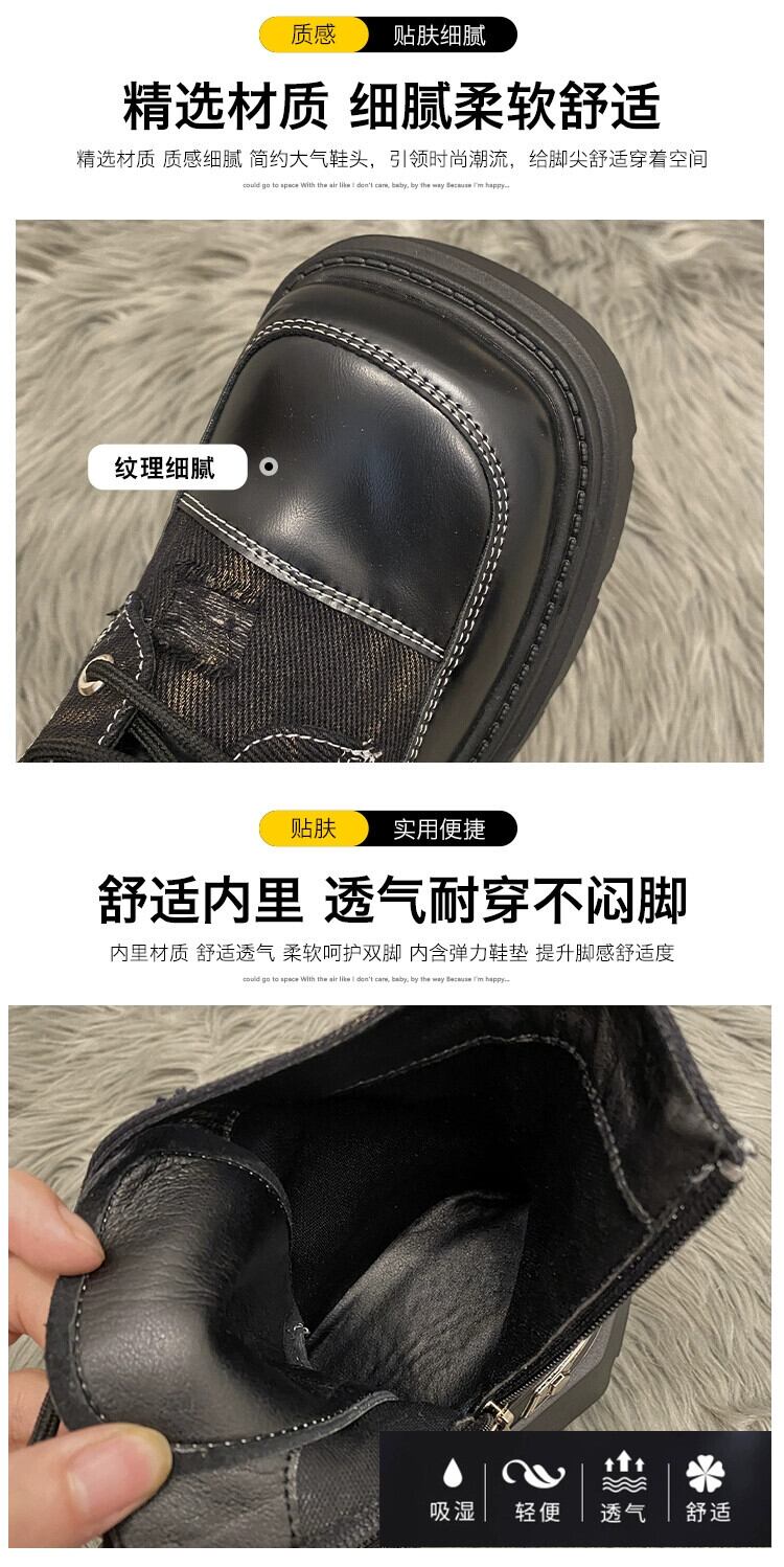 Jia Bufake マーティンブーツ女性の 2023 秋の新ファッションフレンチレトロスクエアトゥ eign スタイル太いヒールオートバイブーツ 靴 シューズ オータム 秋物 スクウェア jxjxf28659710098
