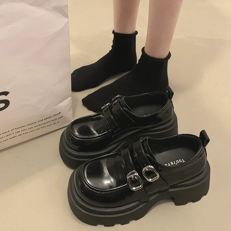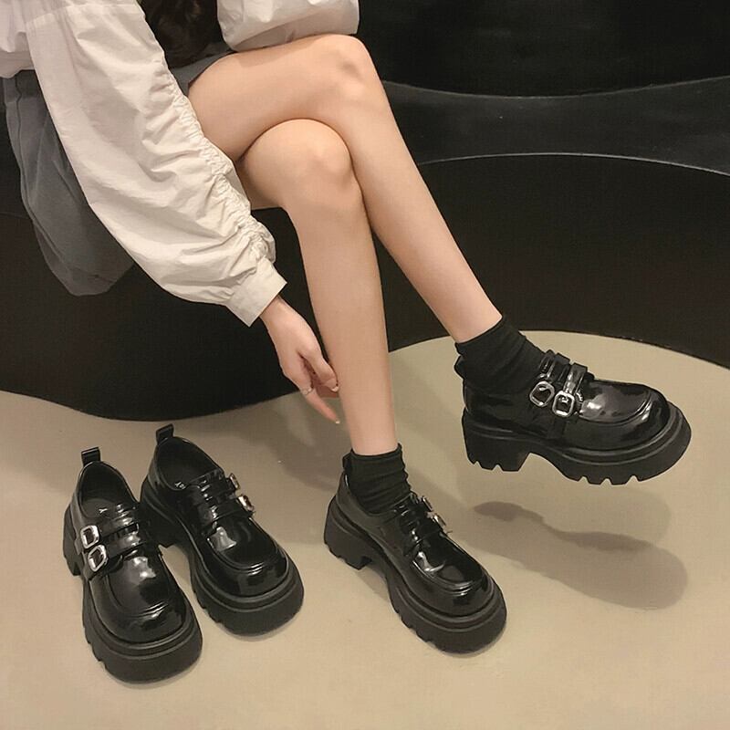 Jia Bufake メリージェーン小さな革の靴の女性 2023 秋の新英国スタイルのベルトバックル太いヒールのシングルシューズのトレンドを高める オータム 秋物 レザー ハーネス jxjxf8567472449