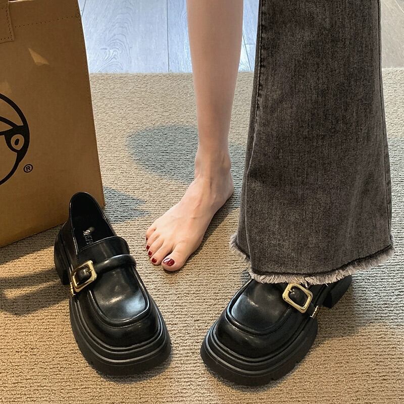 Jia Bujia ローファー女性の 2023 秋スタイル通勤シンプルな多用途気質太いヒール小さな革靴 シューズ オータム 秋物 レザー jxjxf50290988789