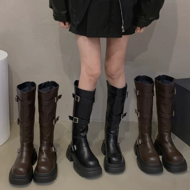 Jia Bujia 厚底ブーツの女性 2023 秋の新ファッションベルトバックルハンサムなファッションストリートナイトブーツ 靴 シューズ オータム 秋物 ハーネス jxjxf97729505713