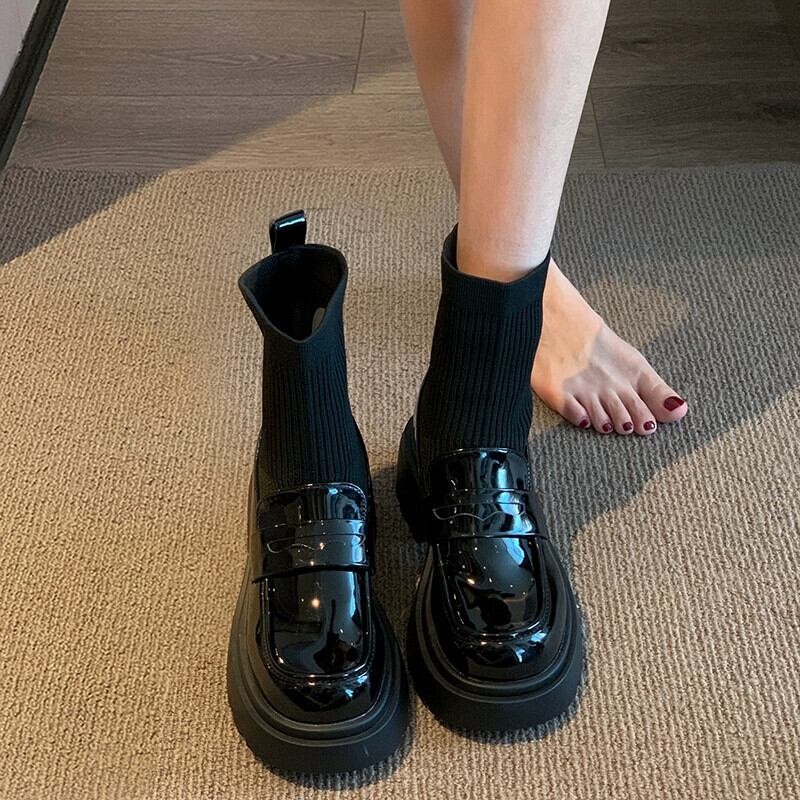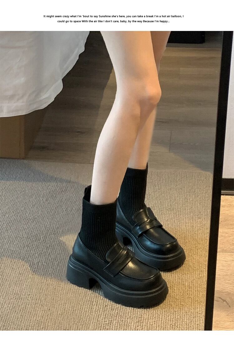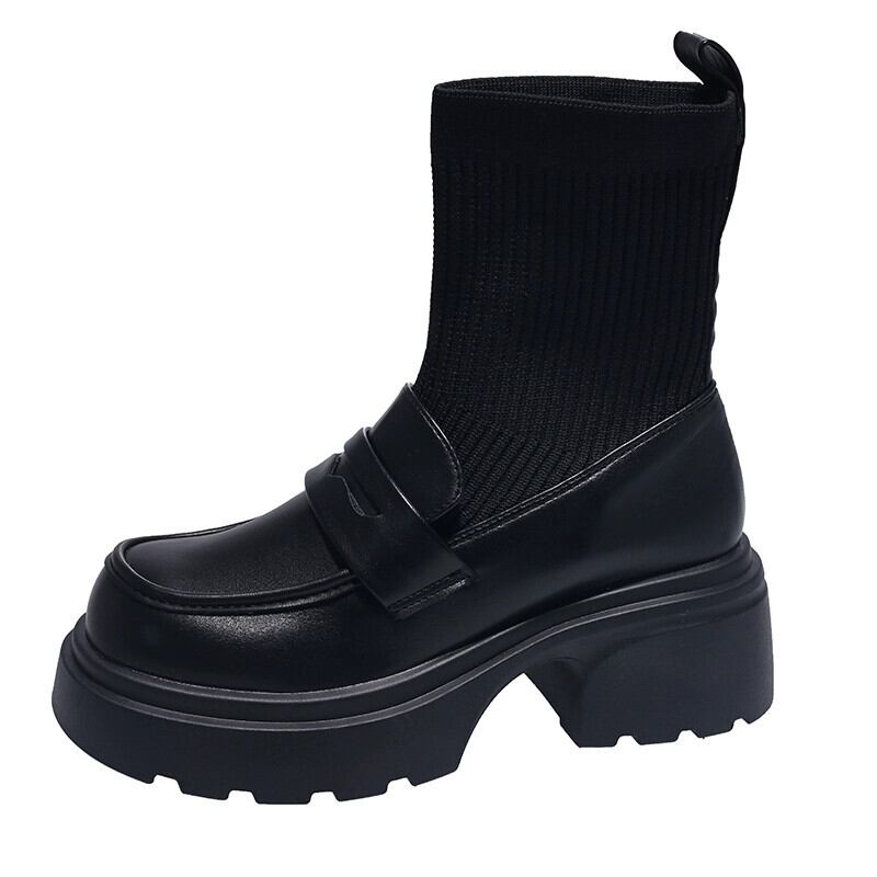 Jia Bufake ソックスブーツ女性の 2023 秋多用途レトロスタイルニット太いヒールスリム弾性ブーツ 靴 シューズ エラスティック 伸縮 オータム 秋物 jxjxf49614430857