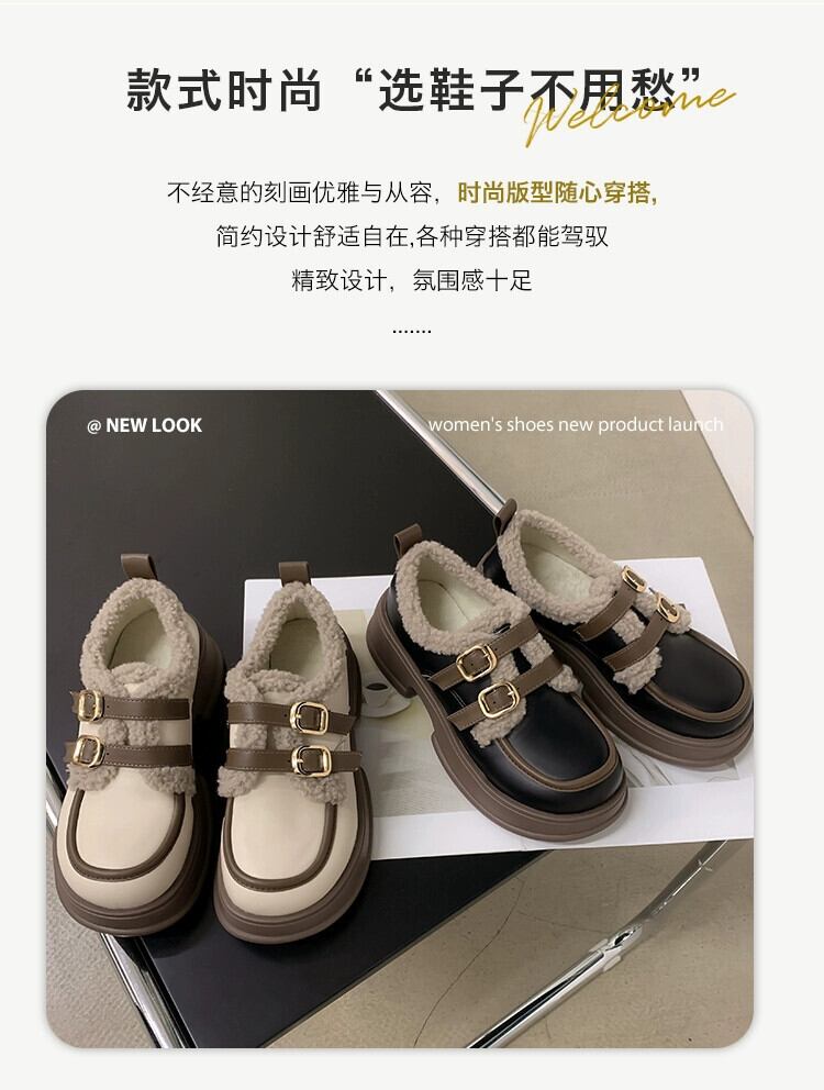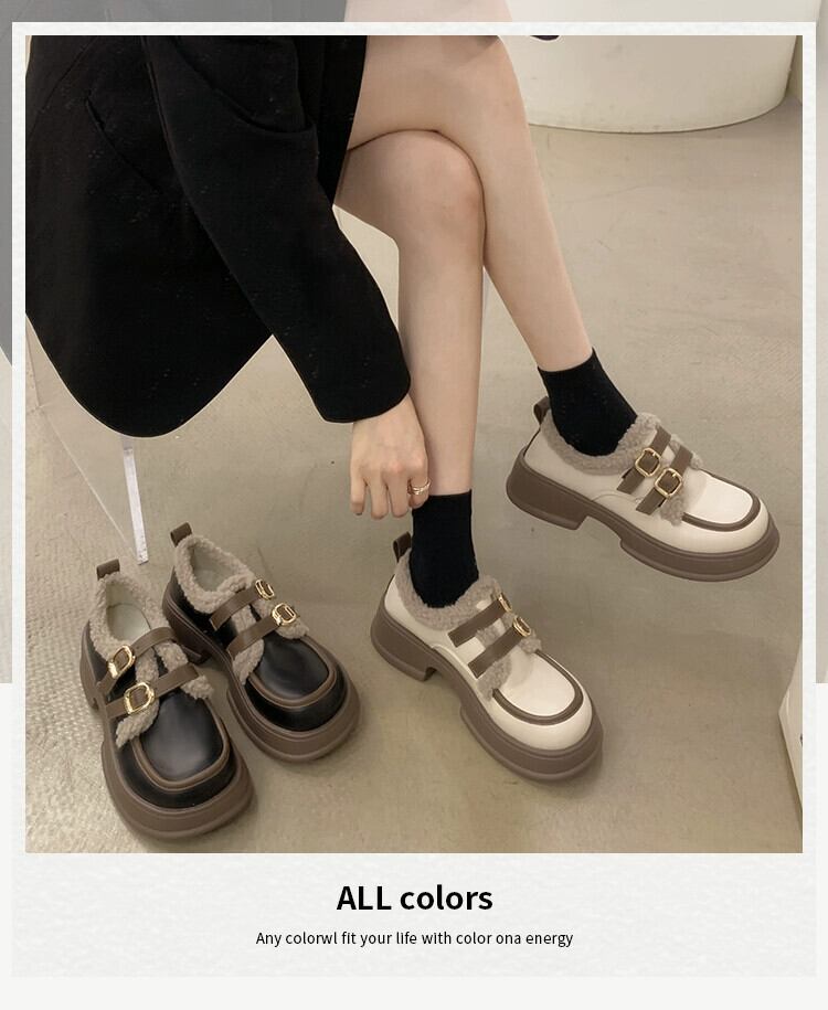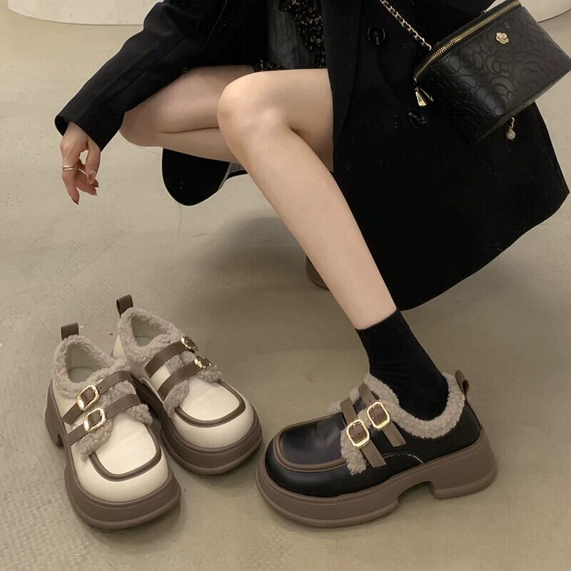 Jia Bujia ベルベットシングルシューズの女性 2023 秋の新ファッション多用途レトロスタイルの厚底小さな革靴 オータム 秋物 レザー jxjxf24315772410
