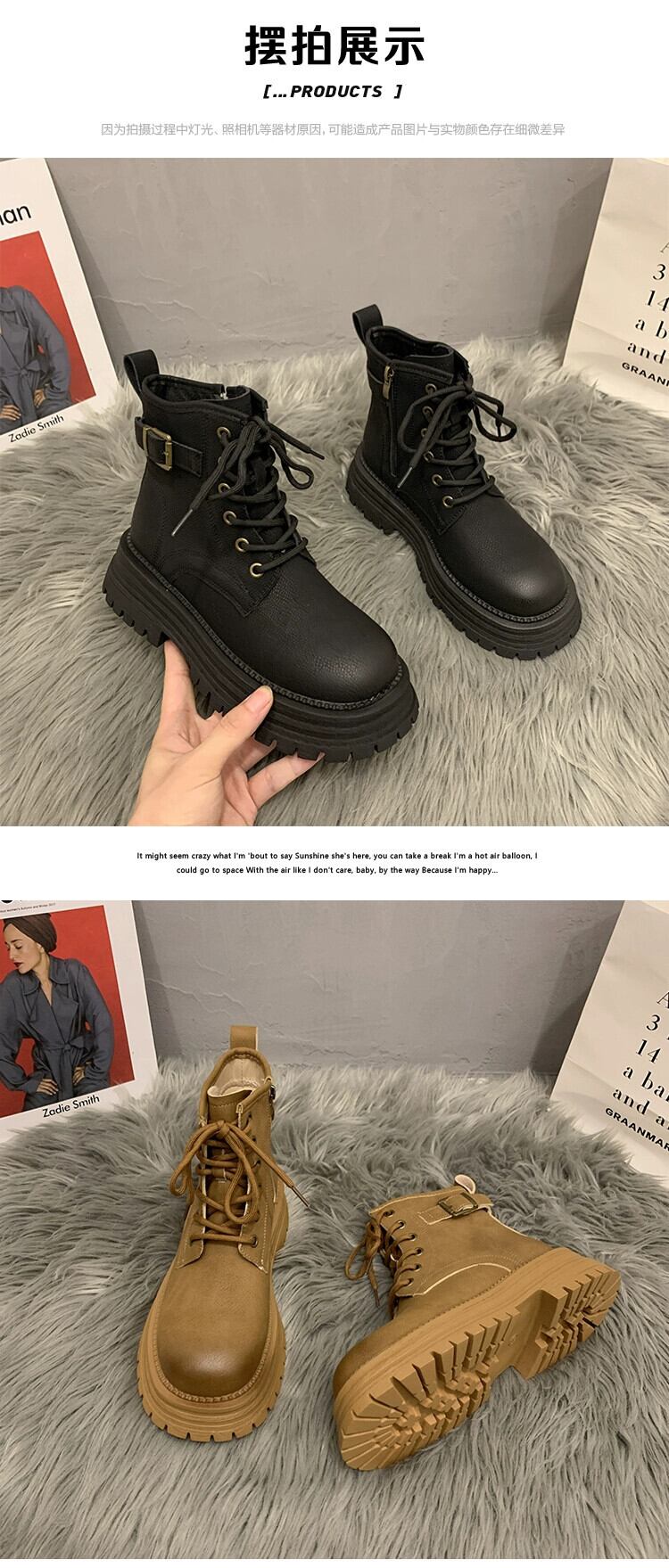 Jia Bujia レディース ショートブーツ 2023 秋トレンディレトロ小型厚底ストリートマーティンブーツ 靴 シューズ オータム 秋物 jxjxf20833283731