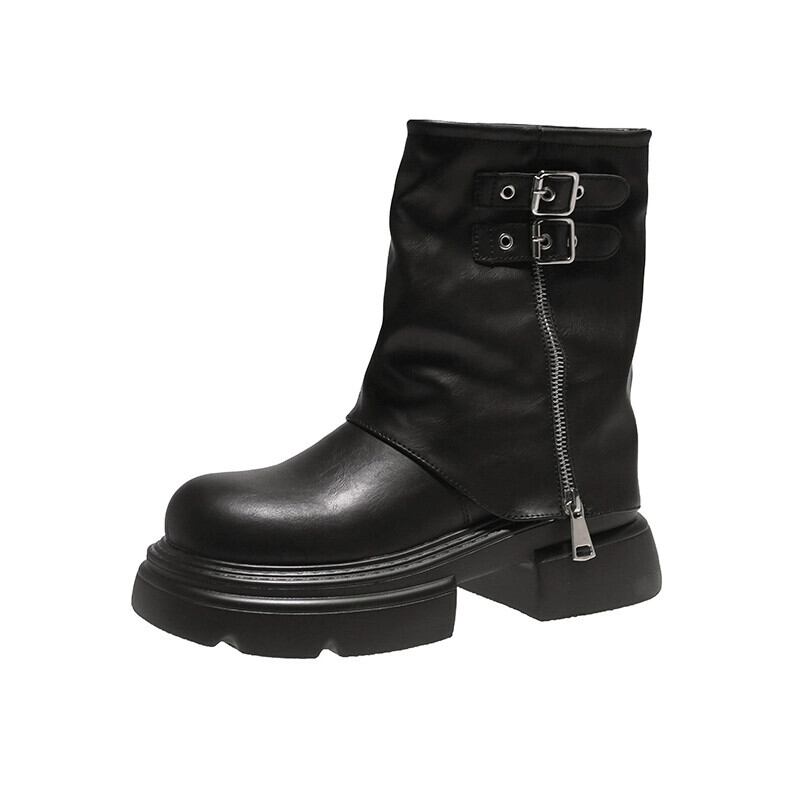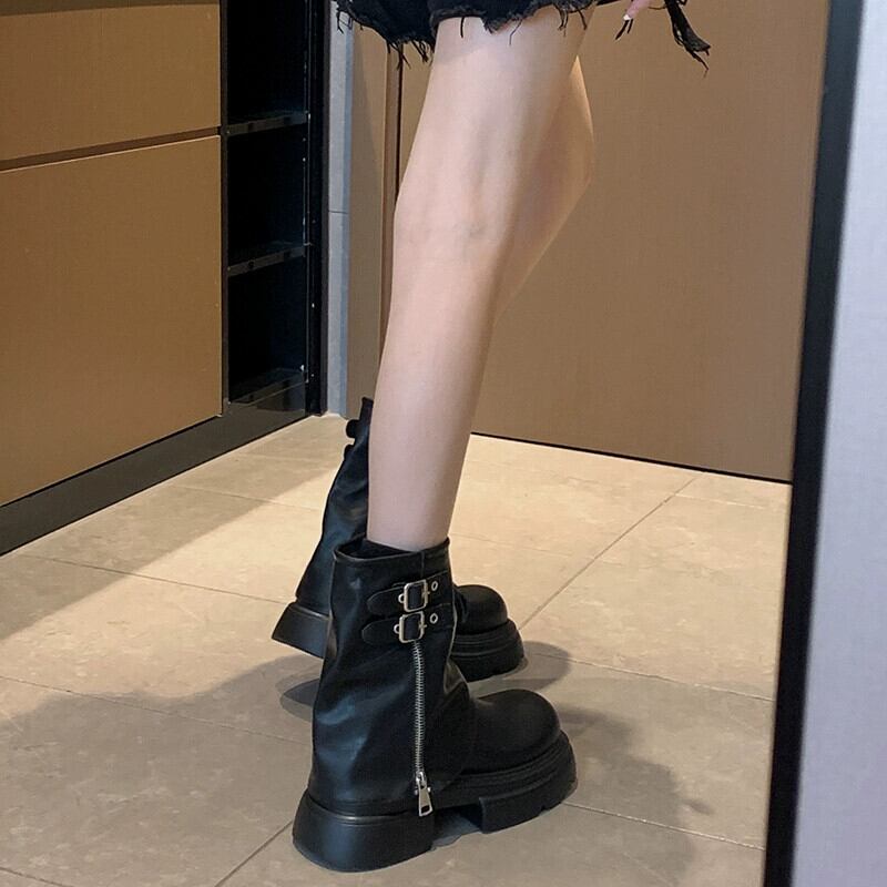 Jia Bujia ショートブーツ女性 2023 新しい秋スタイルインターネットセレブファッショナブルでハンサムなレトロオートバイズボンブーツ 靴 シューズ オータム 秋物 jxjxf89544096917