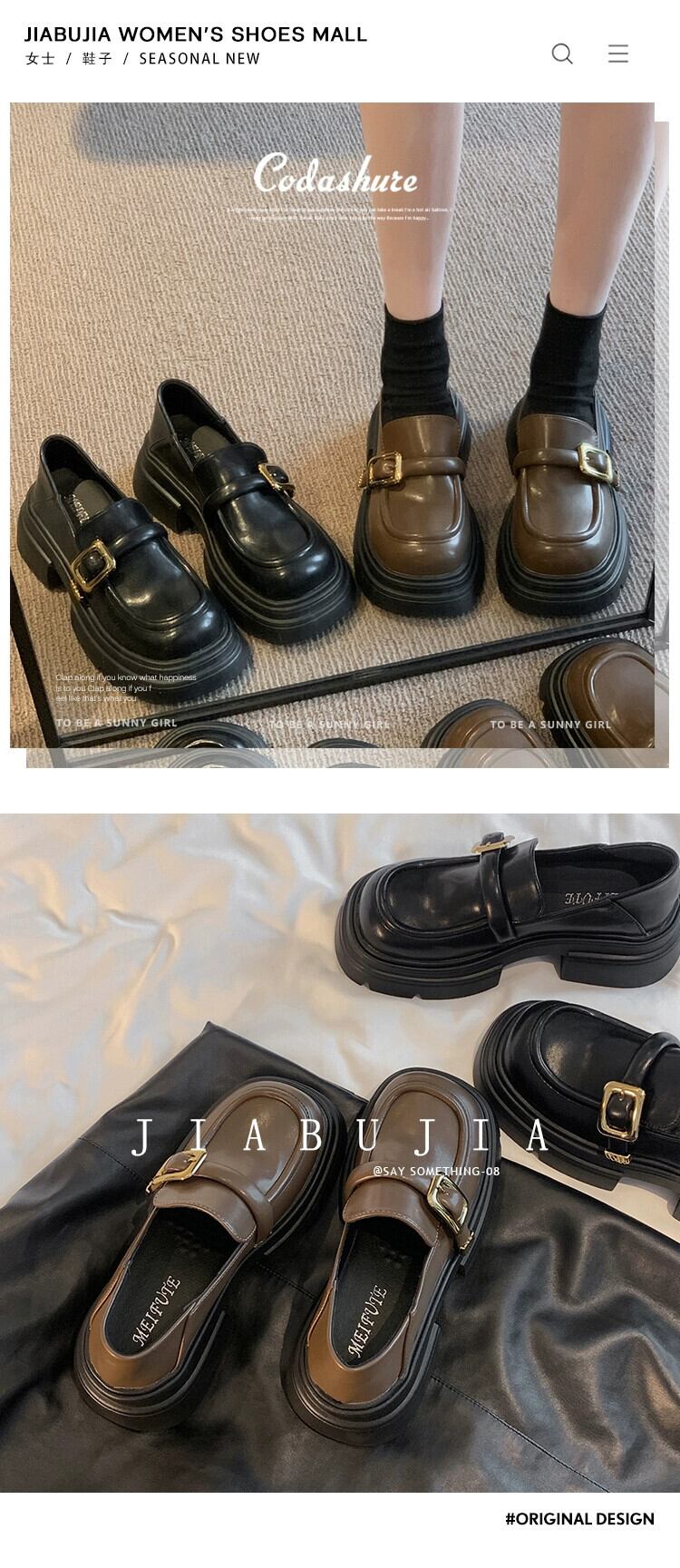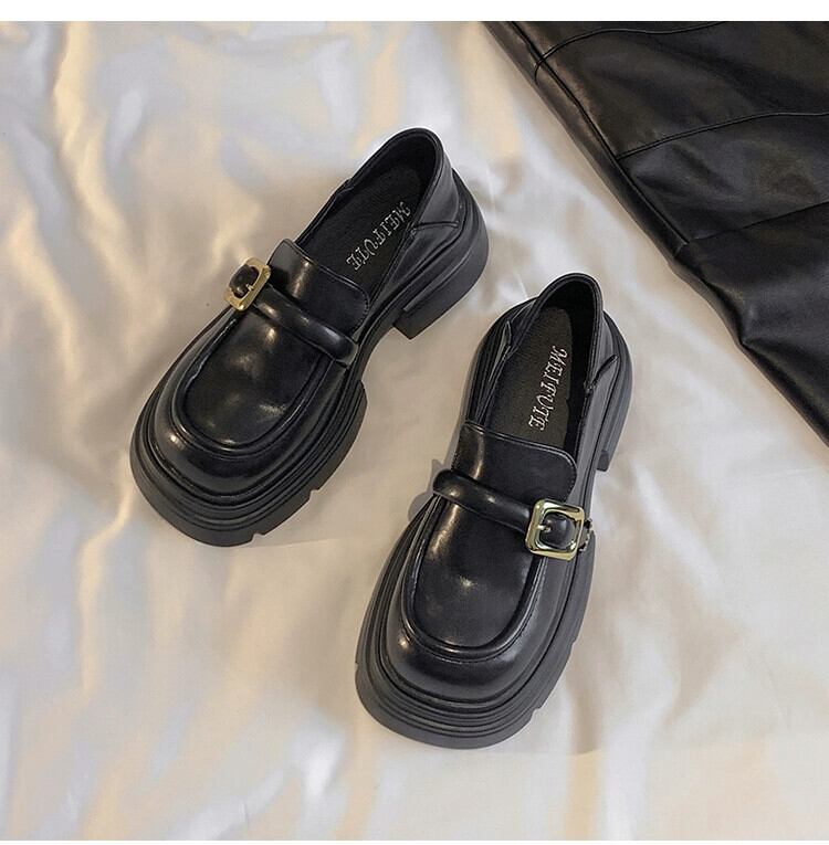 Jia Bujia スタイルの小さな革靴の女性 2023 秋の新スタイルの金属のシンプルな通勤厚底ローファー シューズ オータム 秋物 レザー jxjxf99396625532
