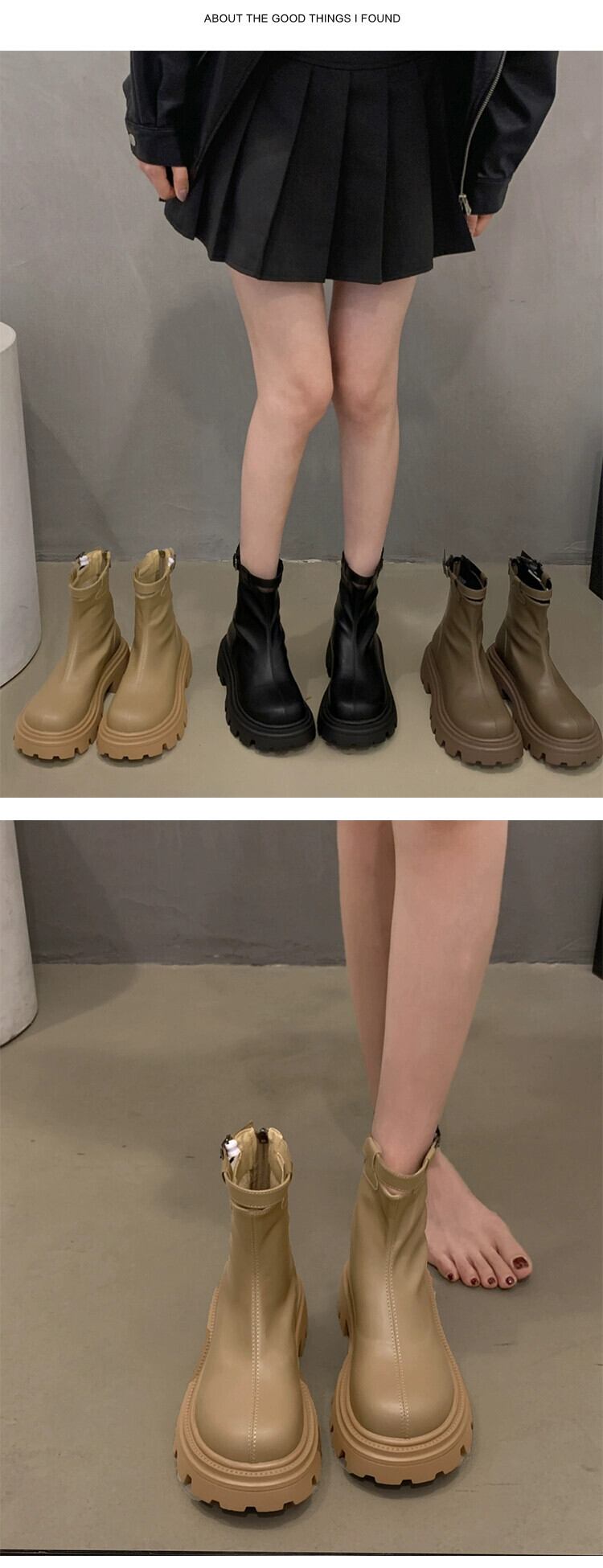 Jia Bufake ショートブーツ女性 2023 秋の新スタイルフレンチベルトバックル多用途シンプルな太いヒール弾性スリムブーツトレンディな 靴 シューズ エラスティック 伸縮 オータム 秋物 ハーネス jxjxf30480146127