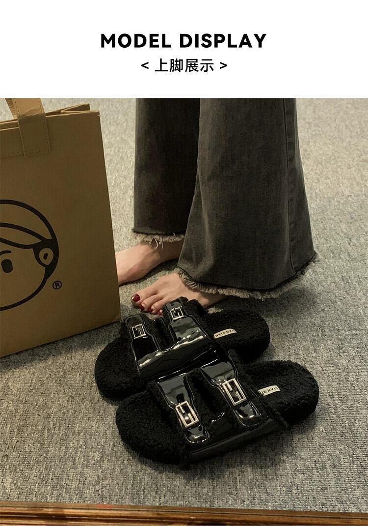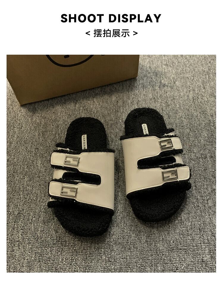 Jia Bujia スリッパレディースアウター 2023 秋の新ファッション人気のベルトバックル厚底毛皮のようなスリッパ流行 ミュール 靴 シューズ オータム 秋物 ハーネス jxjxf1036865931