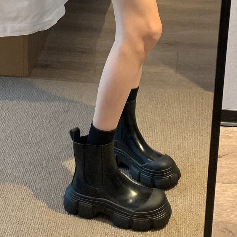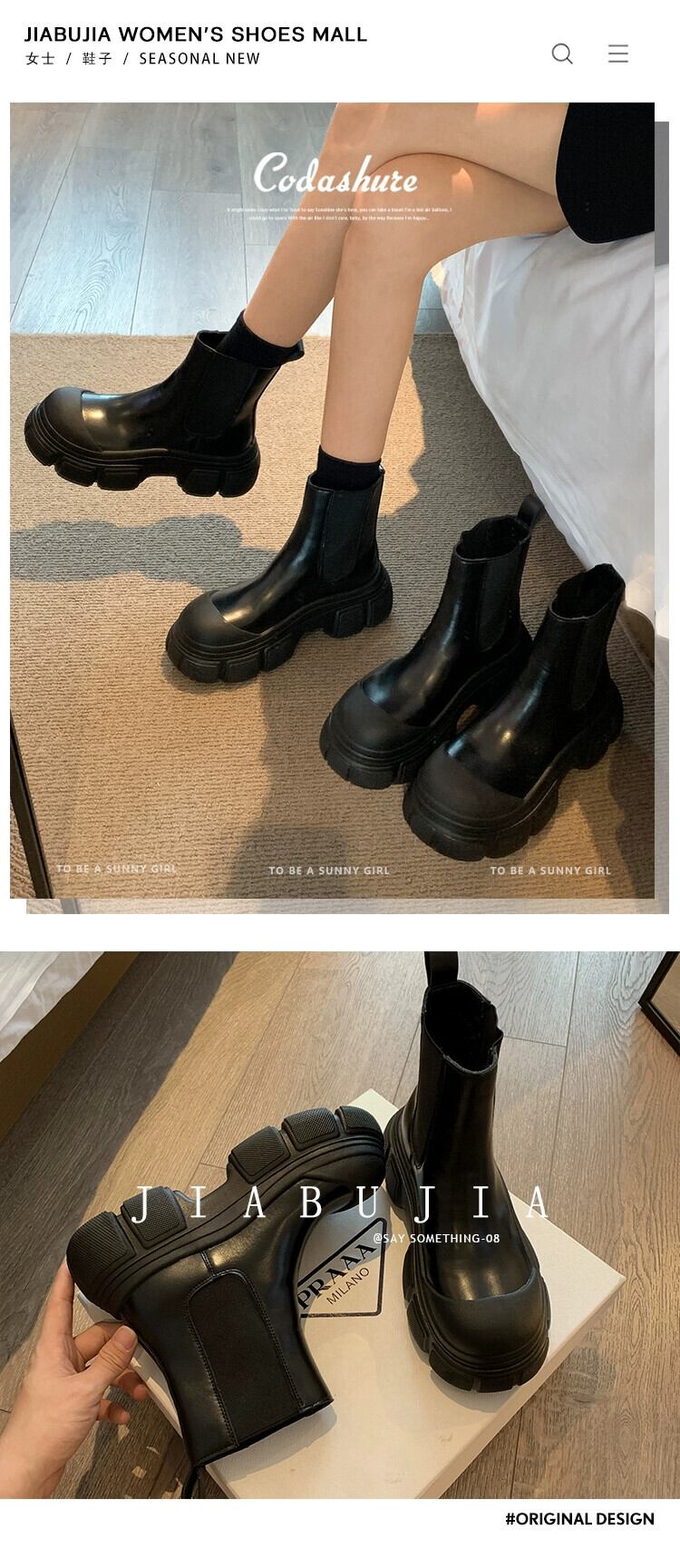 Jia Bujia ショートブーツ レディース 2023 秋 多用途 レトロ ハンサム 厚底 ストリート チェルシーブーツ 靴 シューズ オータム 秋物 jxjxf91146861856